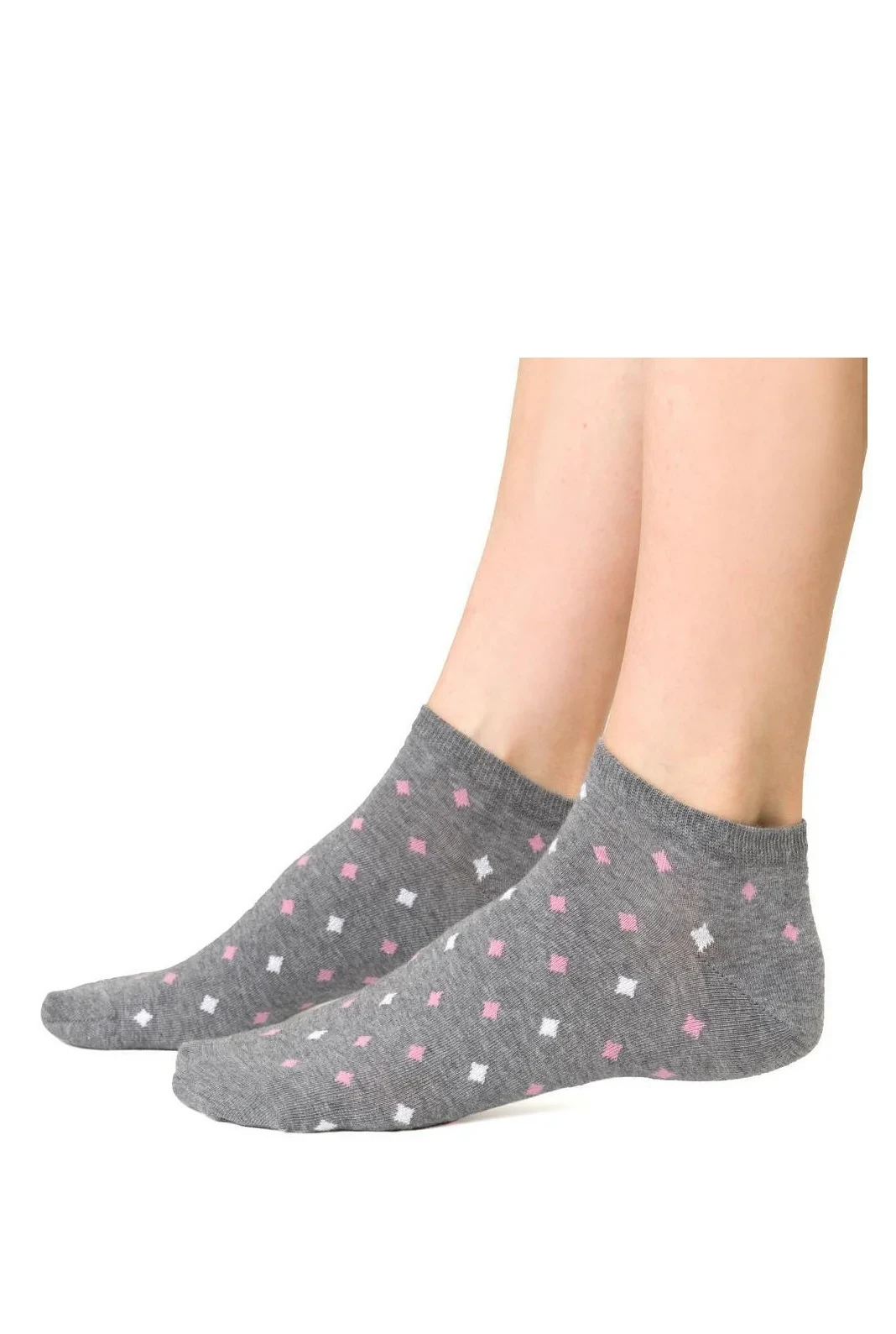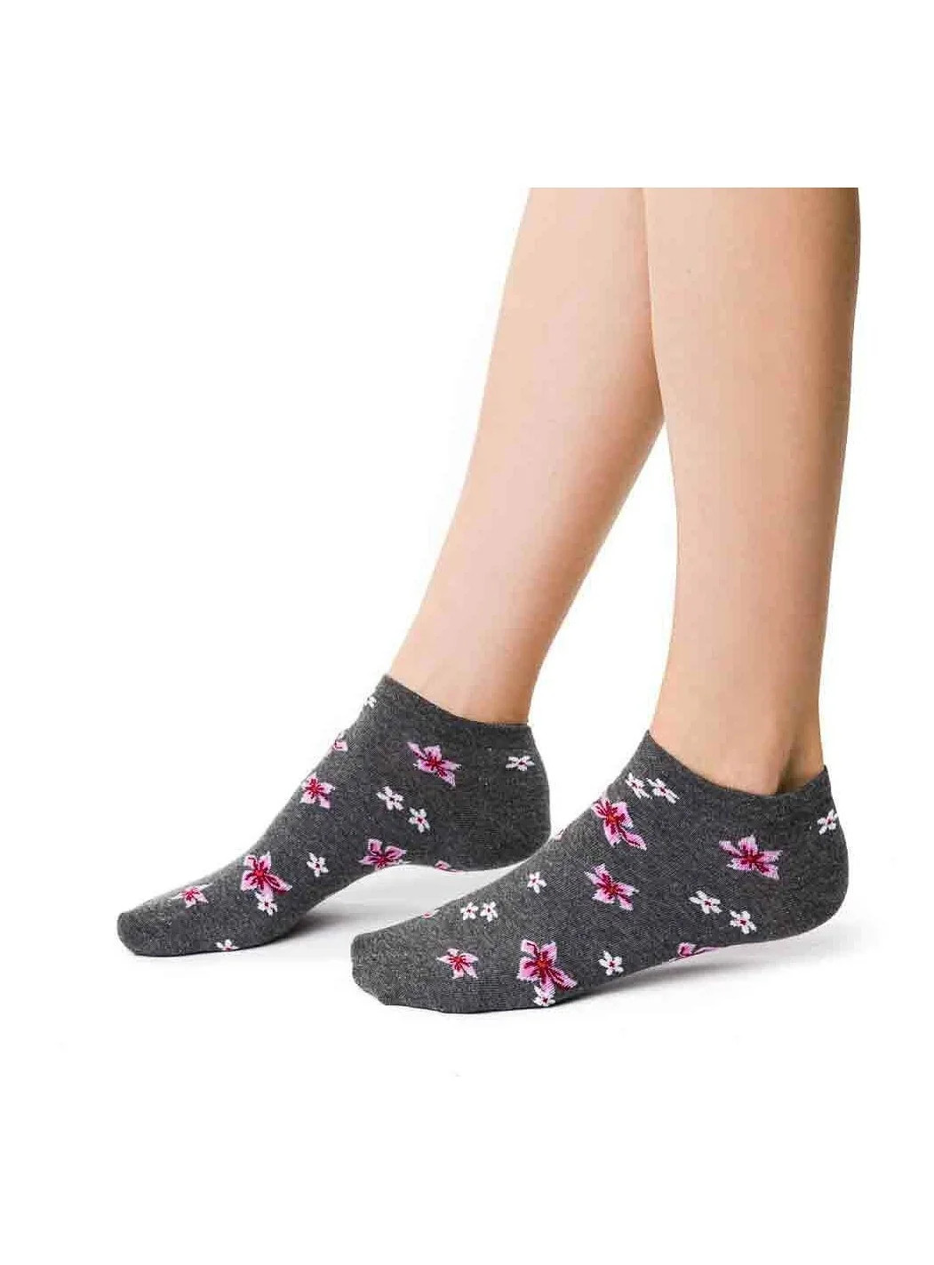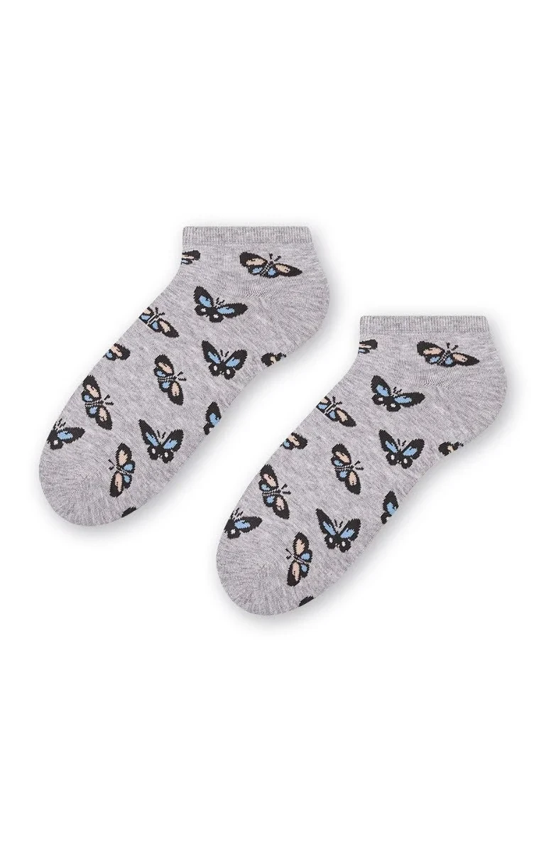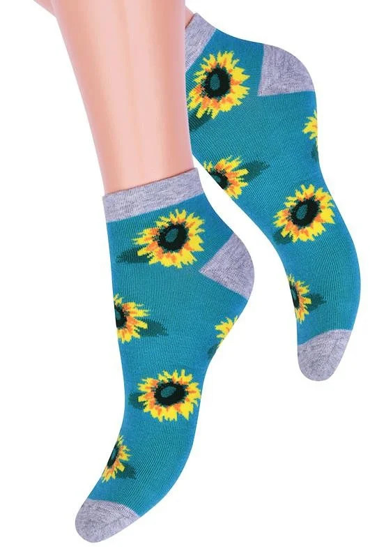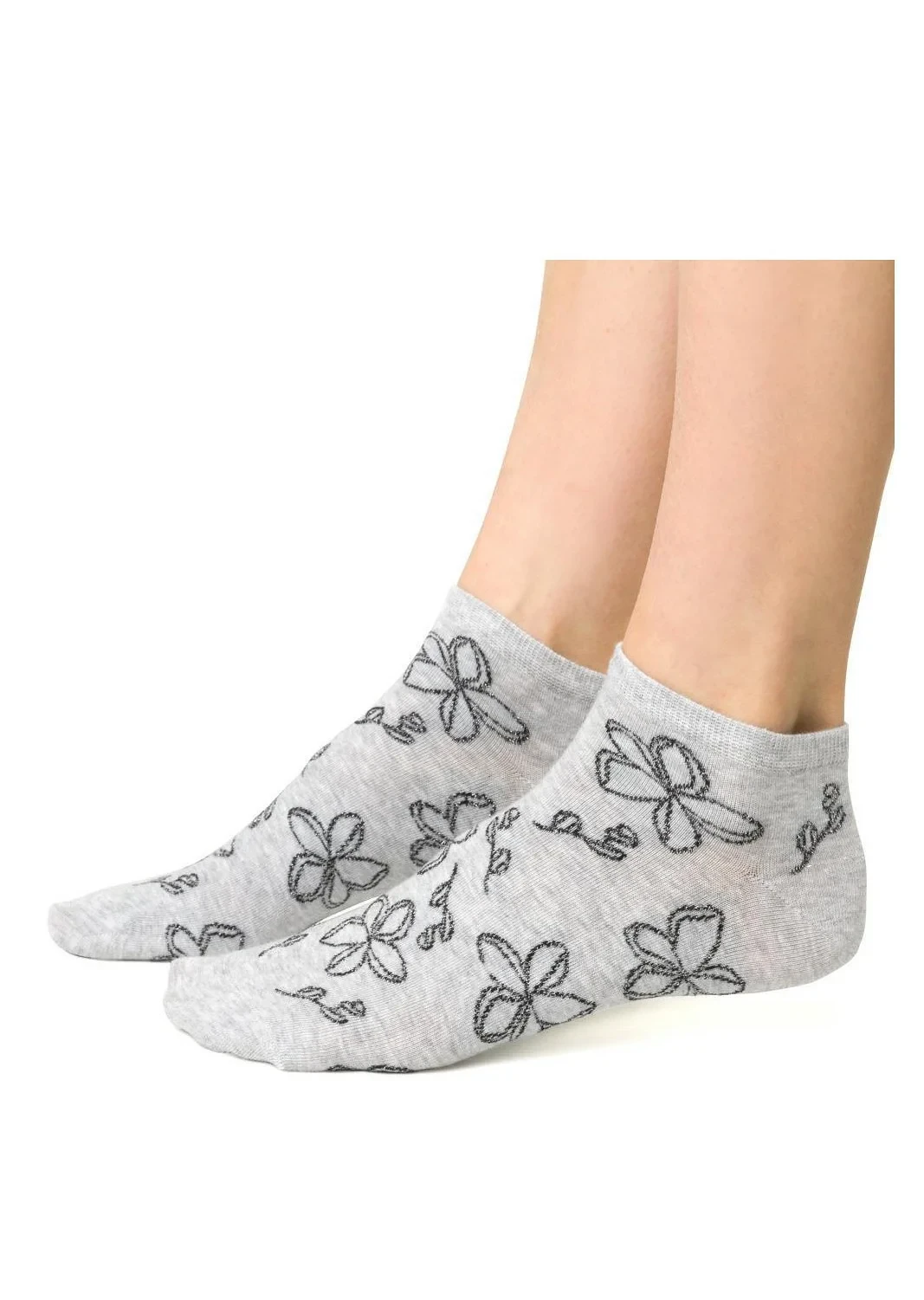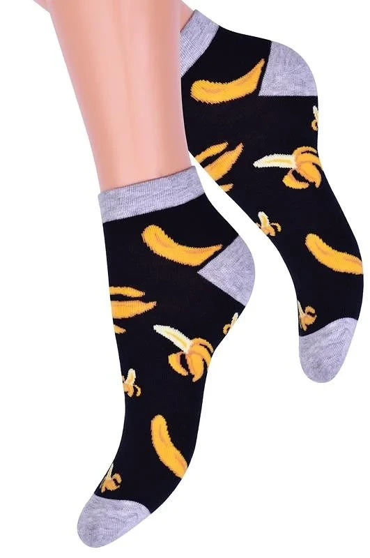 Dámské kotníkové ponožky s přídavkem elastických vláken. Mají nestahující lem. Ozdobené jsou různými vzory.