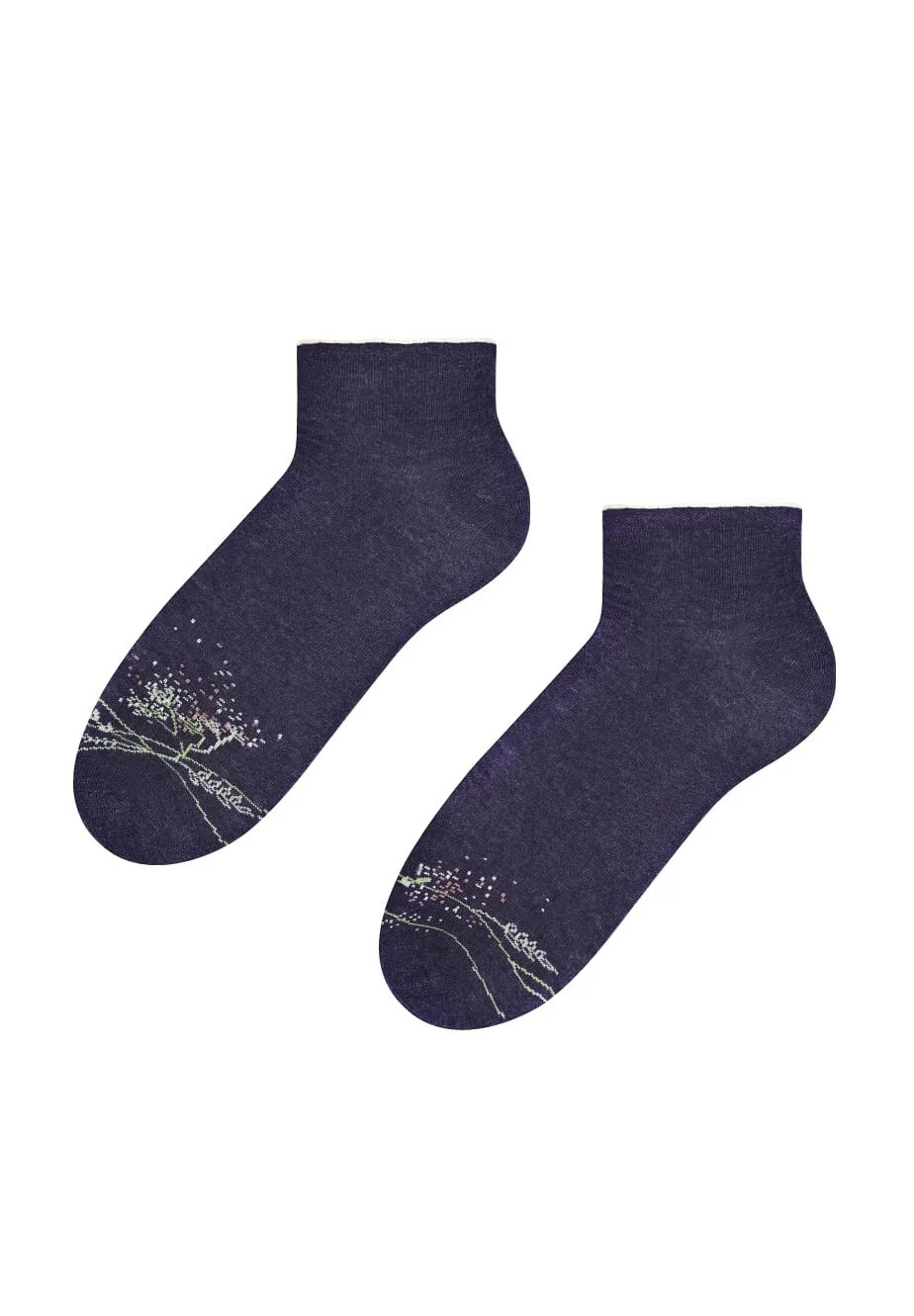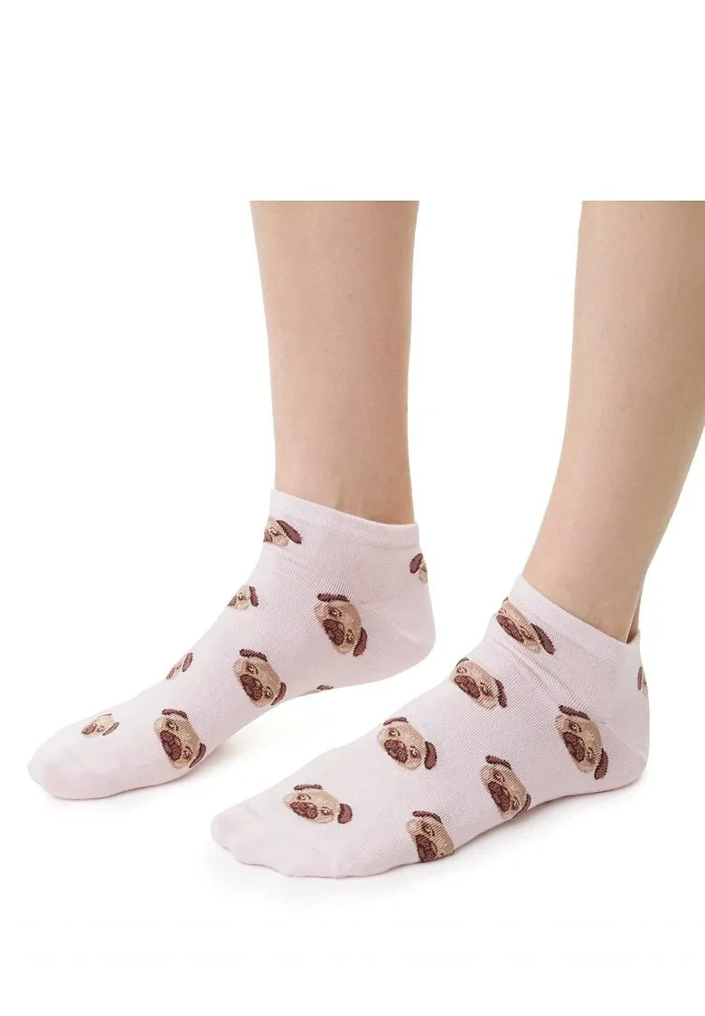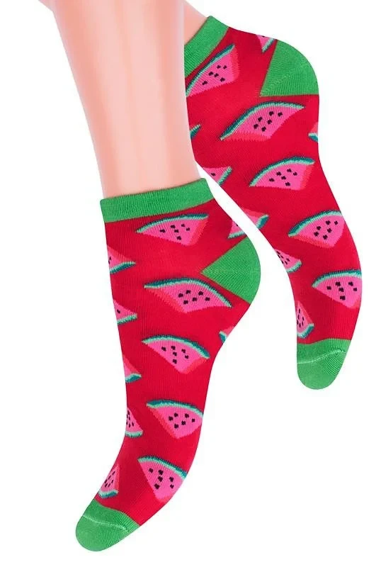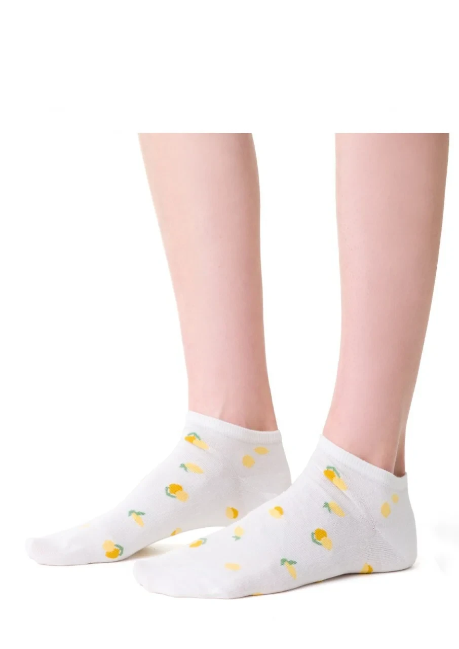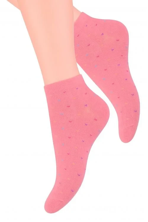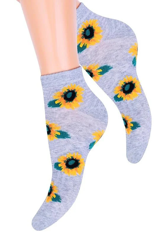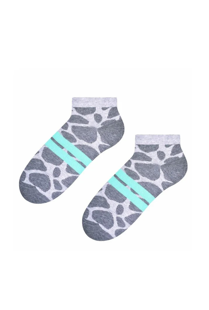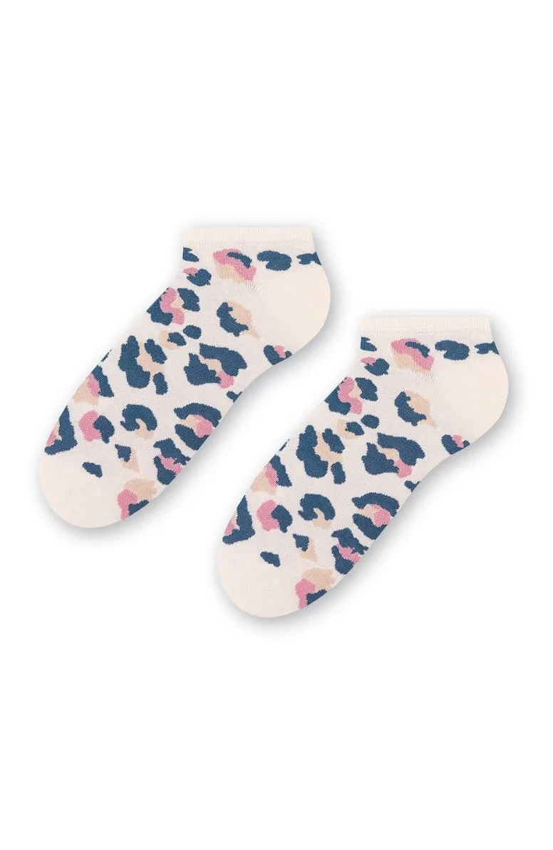 Dámské kotníkové ponožky s přídavkem elastických vláken. Mají nestahující lem. Ozdobené jsou různými vzory.