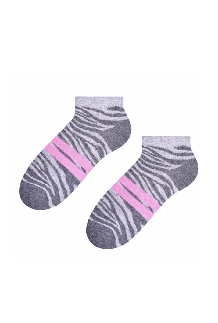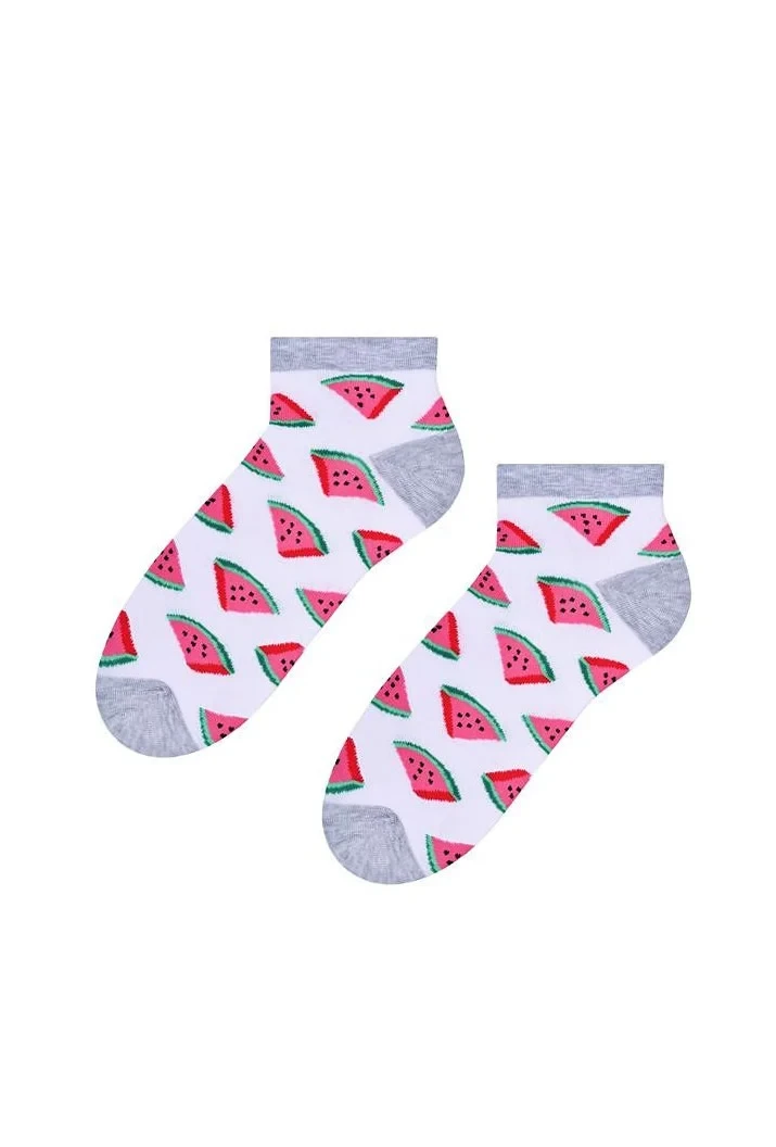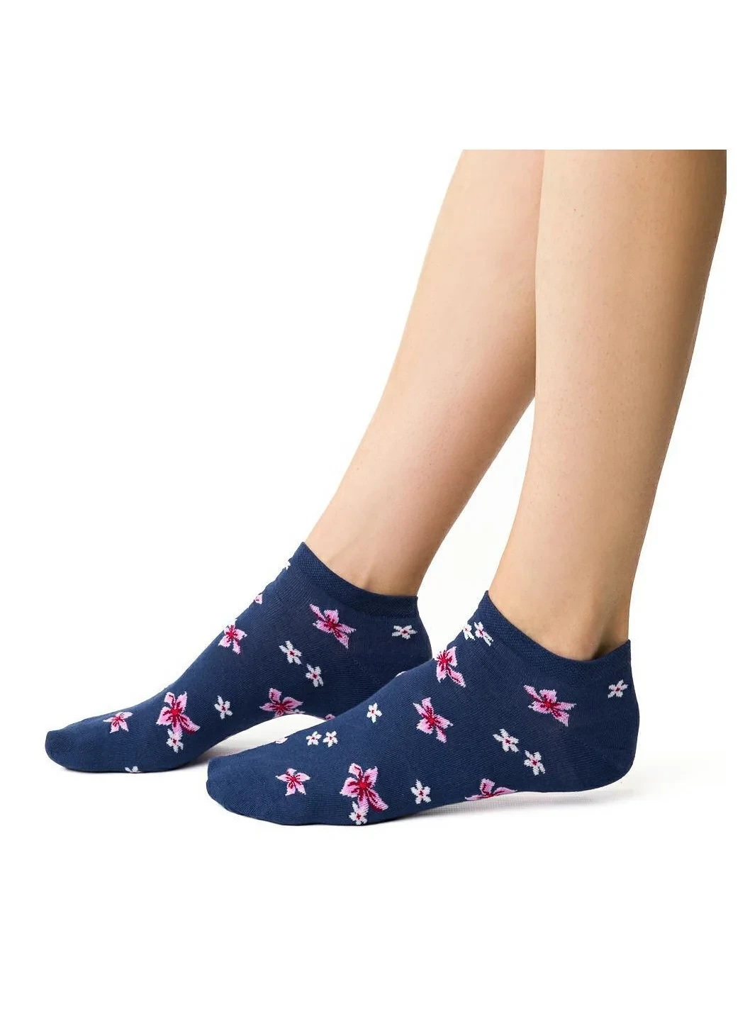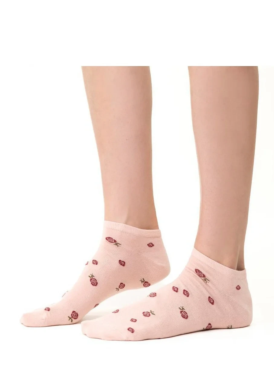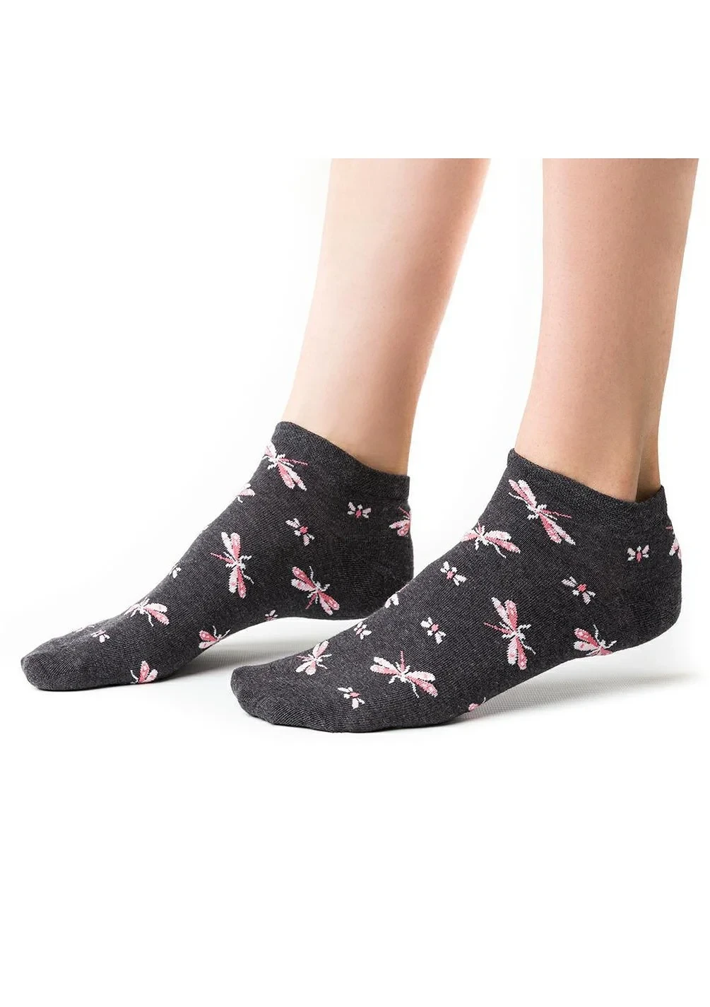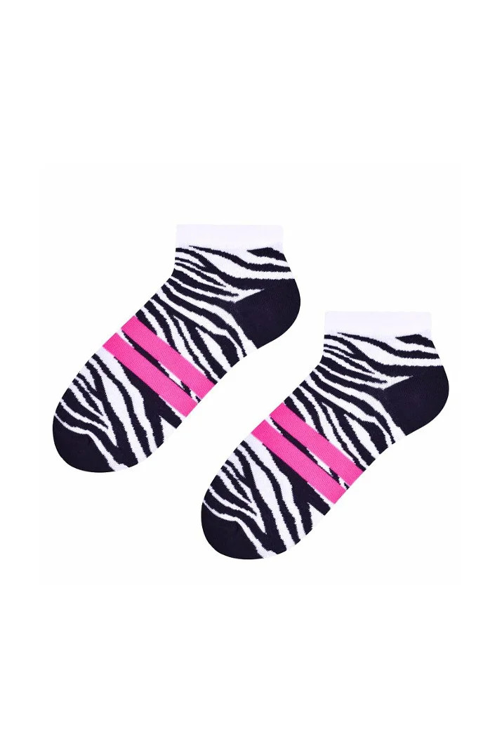 Dámské kotníkové ponožky s přídavkem elastických vláken. Mají nestahující lem. Ozdobené jsou různými vzory.