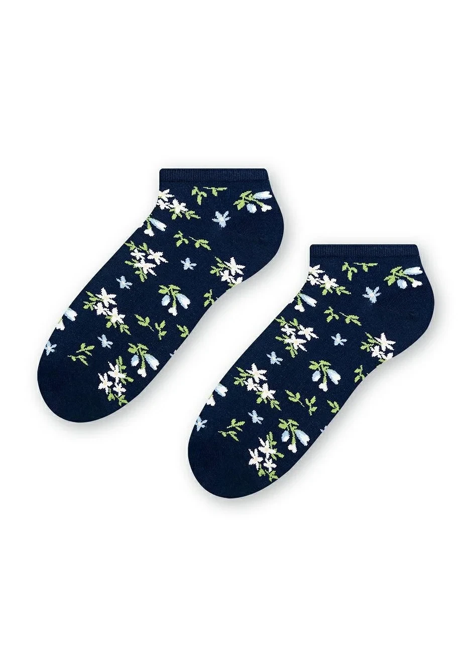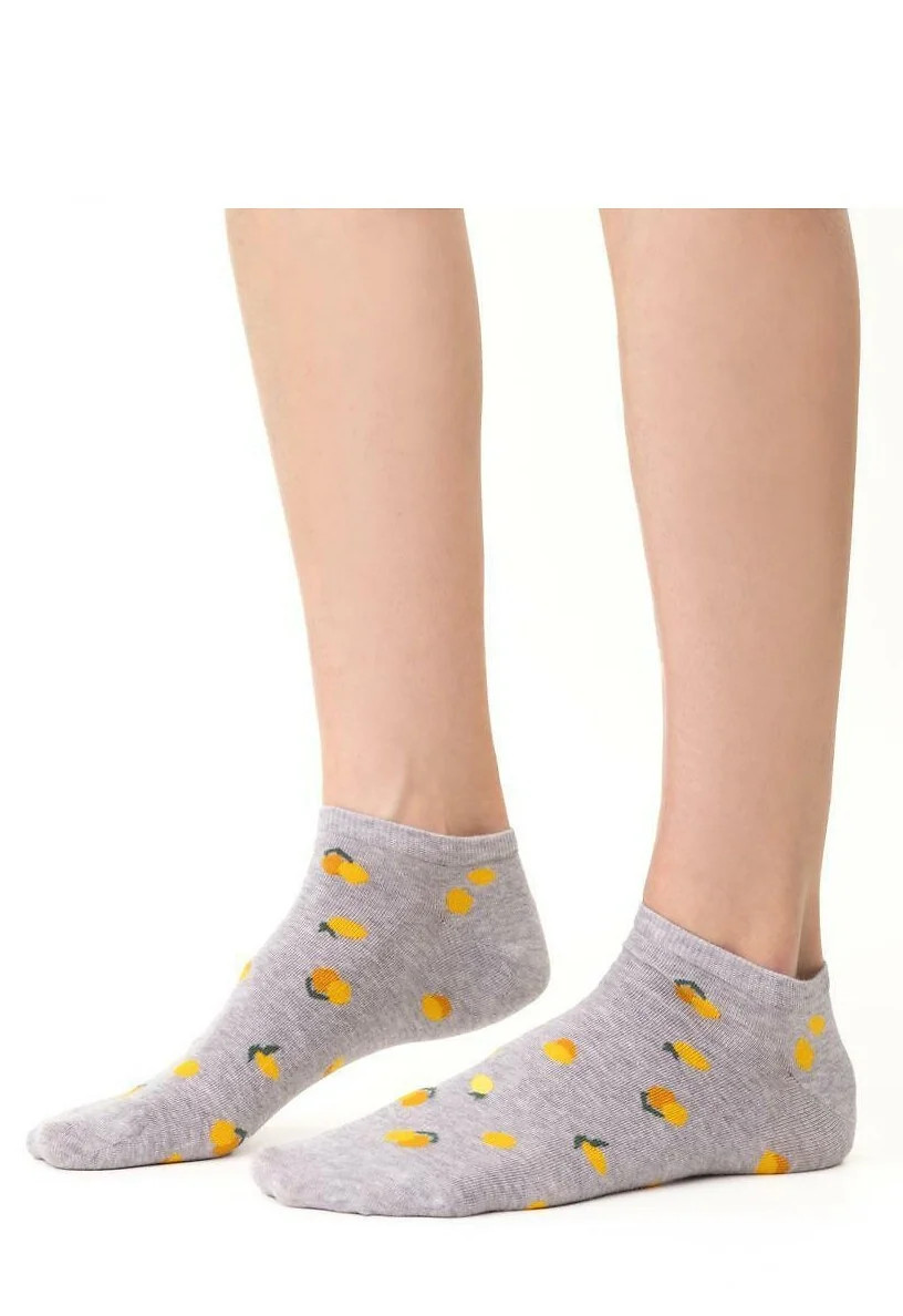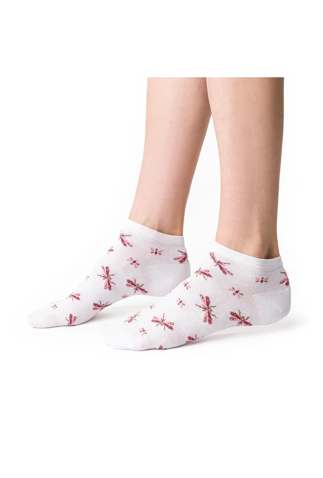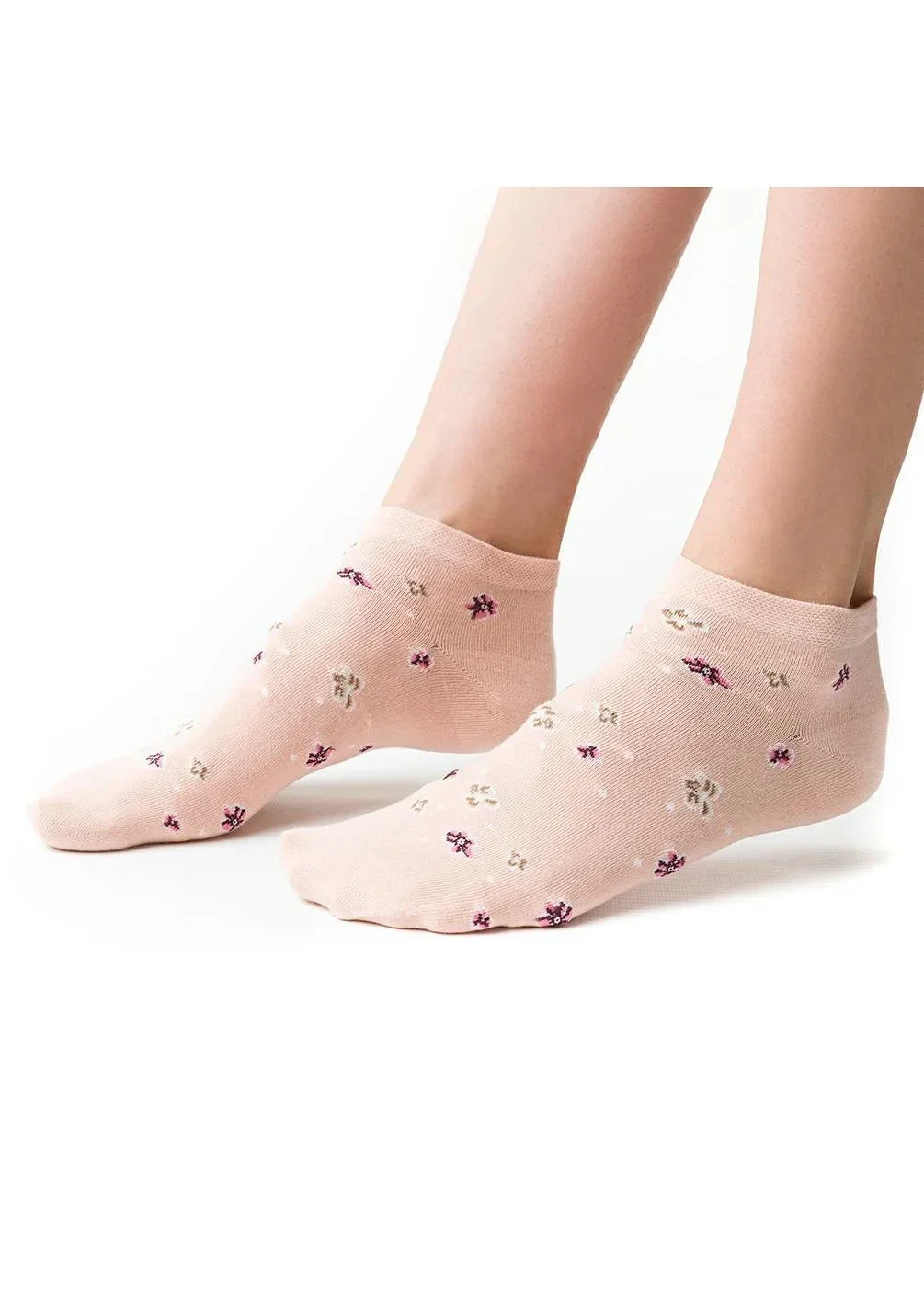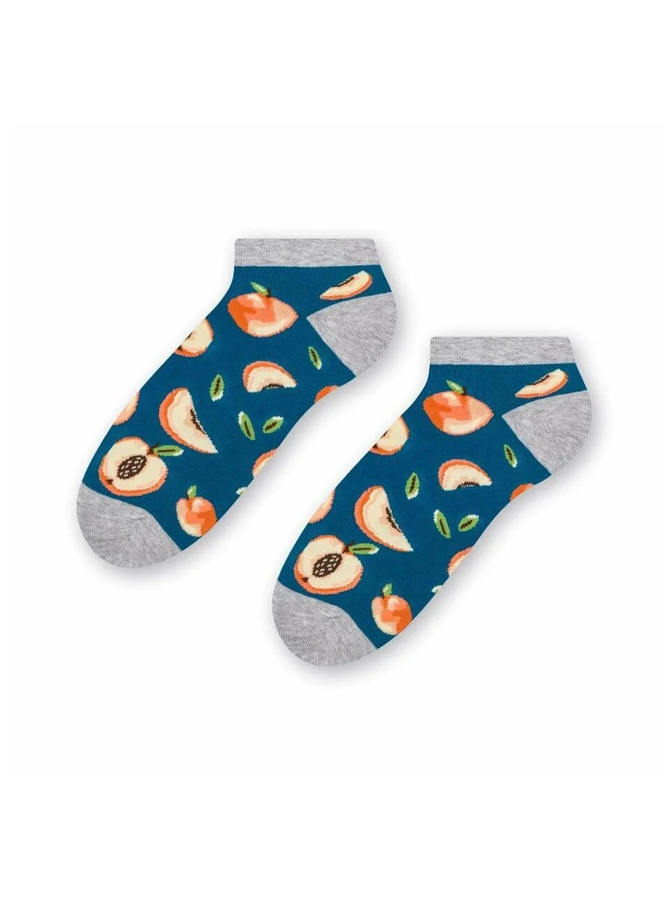 Dámské kotníkové ponožky s přídavkem elastických vláken. Mají nestahující lem. Ozdobené jsou různými vzory.