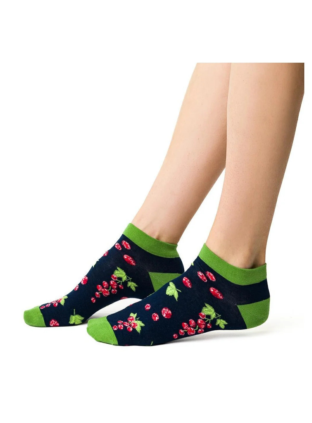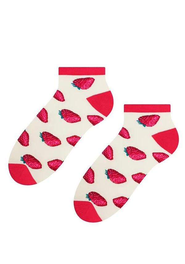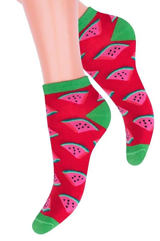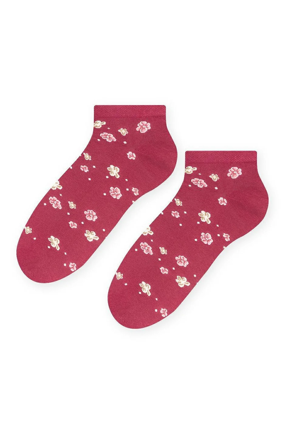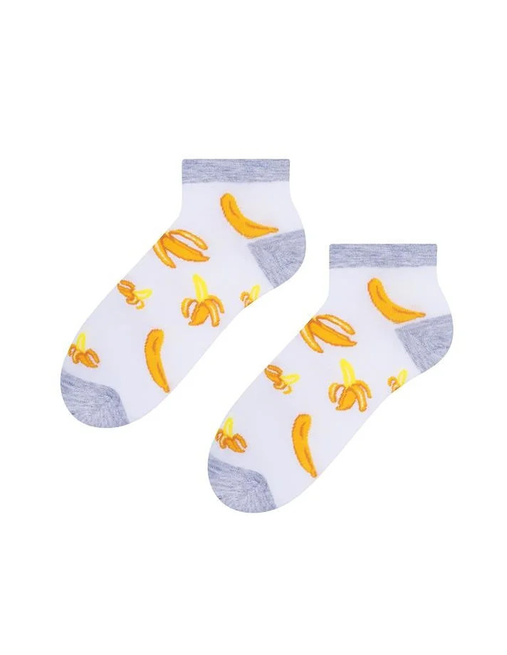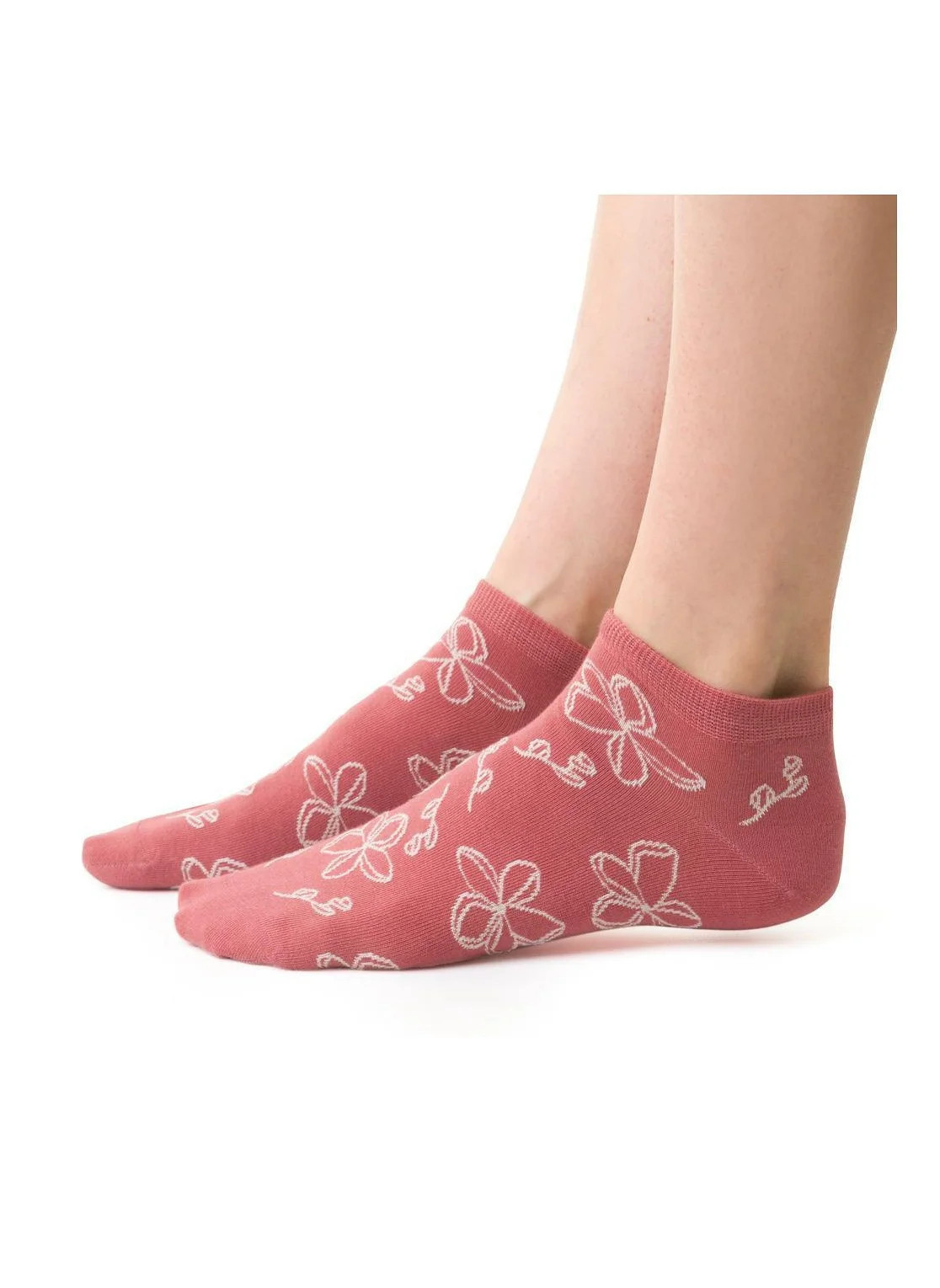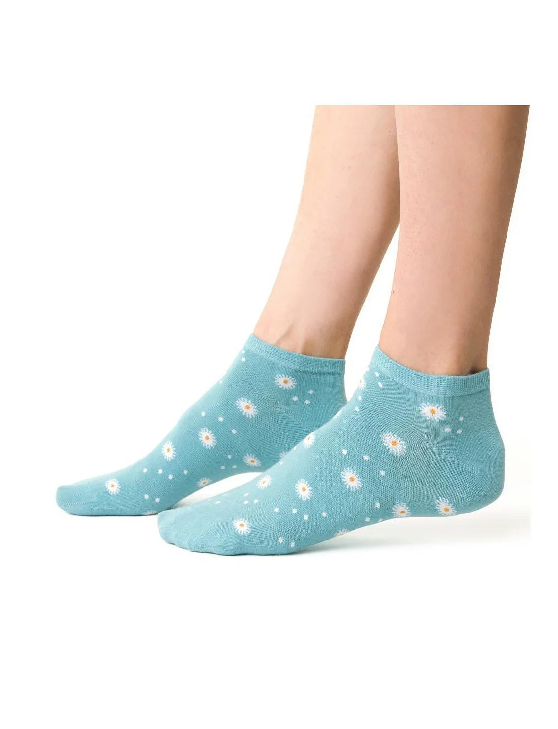 Dámské kotníkové ponožky s přídavkem elastických vláken. Mají nestahující lem. Ozdobené jsou různými vzory.