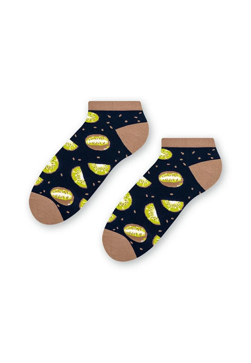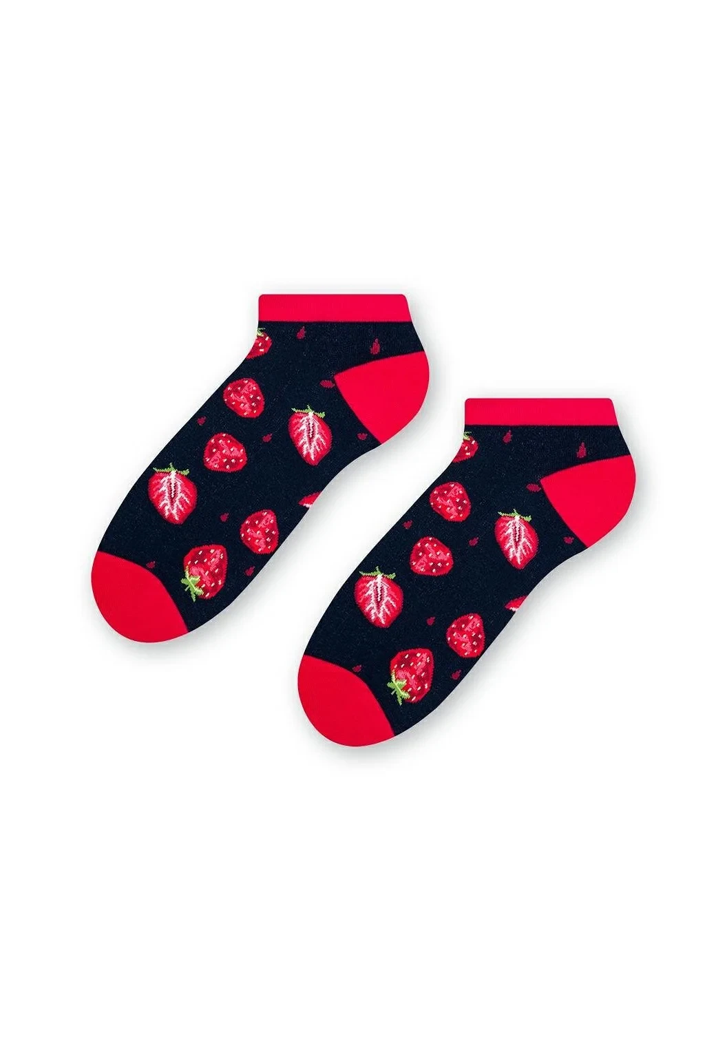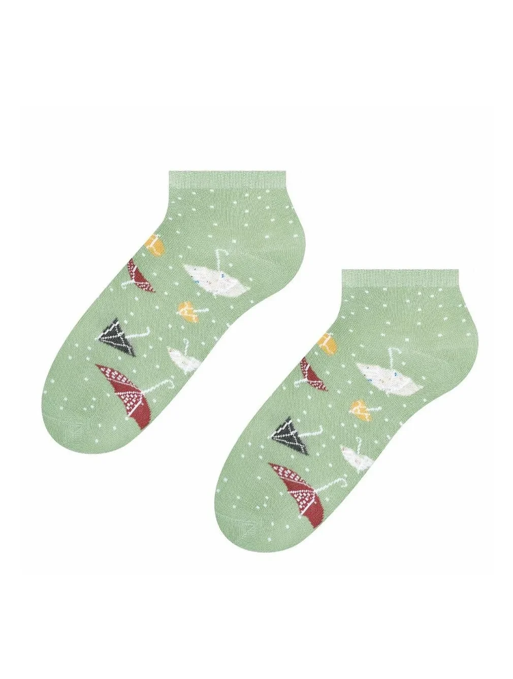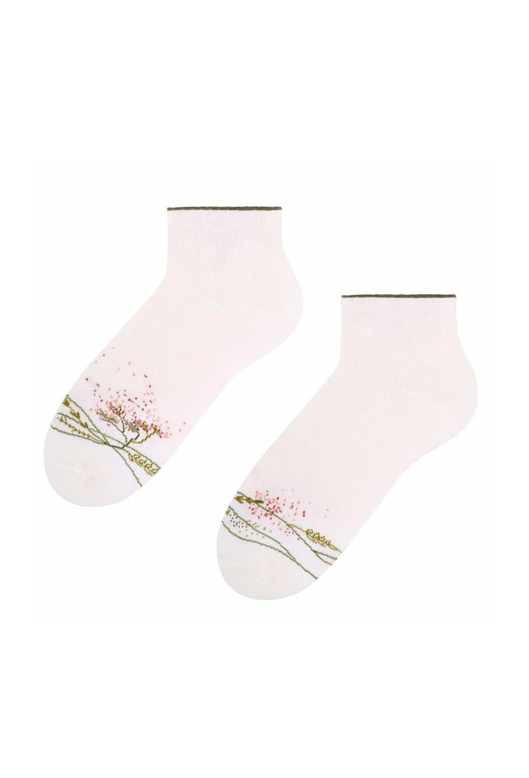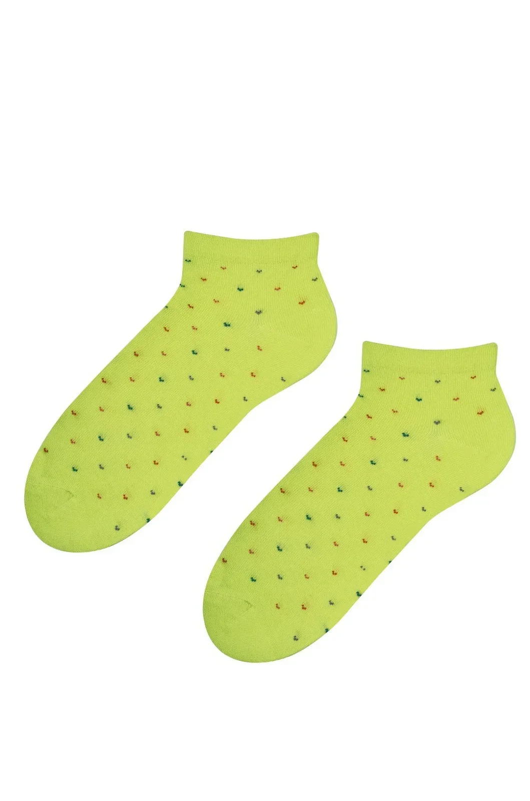 Dámské kotníkové ponožky s přídavkem elastických vláken. Mají nestahující lem. Ozdobené jsou různými vzory.