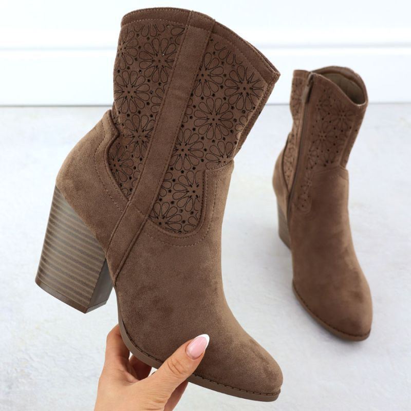 Dámské kovbojské boty ažurové semišové hnědé model 21905575 - S.Barski