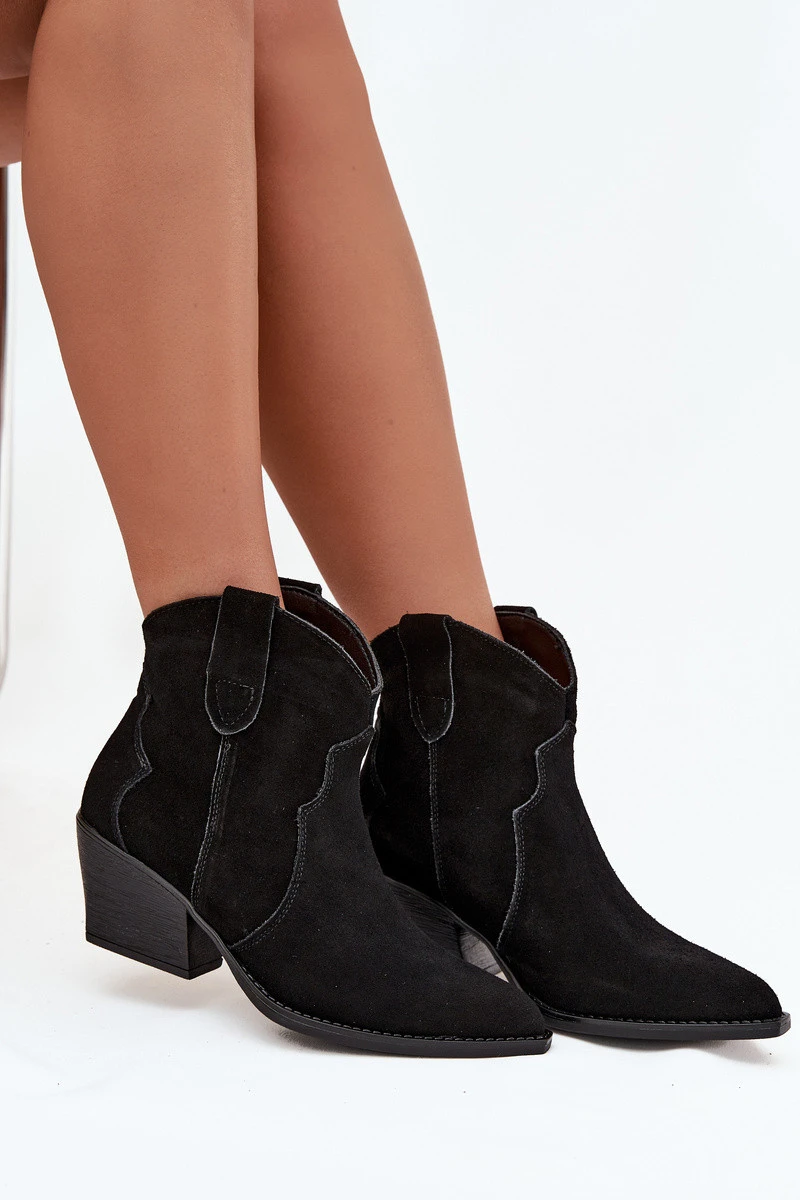 Dámské kovbojské kotníkové boty z přírodní velurové kůže Beretta – černé