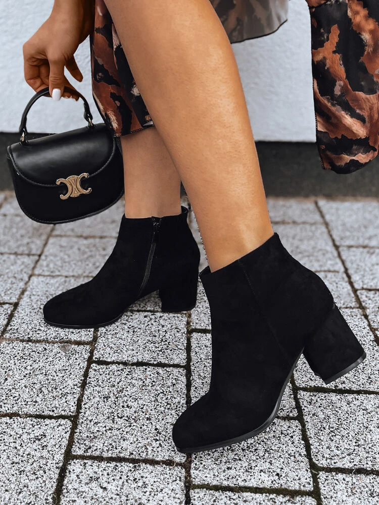 Tyto stylové kozačky z černého semiše jsou kvintesencí městské elegance. Díky pohodlnému, robustnímu podpatku a praktickému zapínání na zip v sobě spojují pohodlí s elegancí. Jejich klasický design z nich dělá dokonalý doplněk k ležérním i sofistikovanějším kompletům. Tyto kozačky jsou univerzální volbou, která dodá jedinečný nádech každému outfitu.