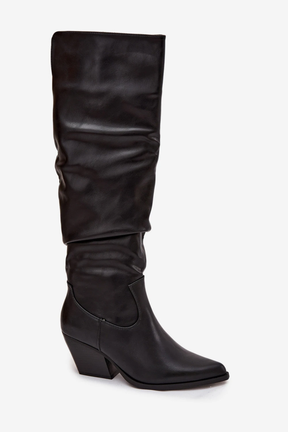 Kozačky kovbojské dámské vyrobené z ekokože. Vyznačují se charakteristickým zvrásněním na lýtku a špičatými špičkami. Jsou osazeny na stabilním, useknutém podpatku typu sloupek, což zajišťuje pohodlí a jistotu při chůzi. Boty se zapínají na zip, co usnadňuje jejich obouvání. Vnitřek je vyztužen pěnou pokrytou látkou, což zaručuje teplo a pohodlí v chladnějších dnech. Jedná se o skvělý návrh pro ženy, které milují západní styl v elegantním provedení, ideální k šatům, sukním nebo přiléhavým kalhotám.