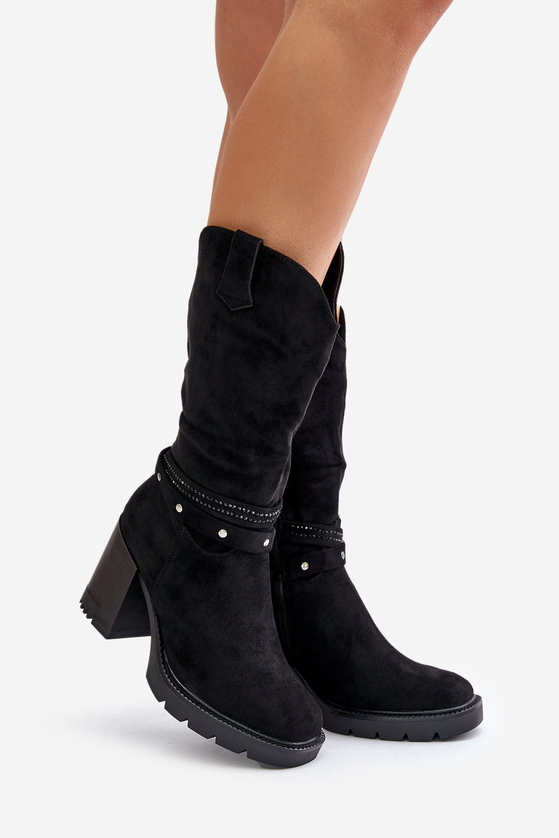 Dámské Kozačky Do Poloviny Lýtka Na Podpatku Zateplené Černé Ivanelis