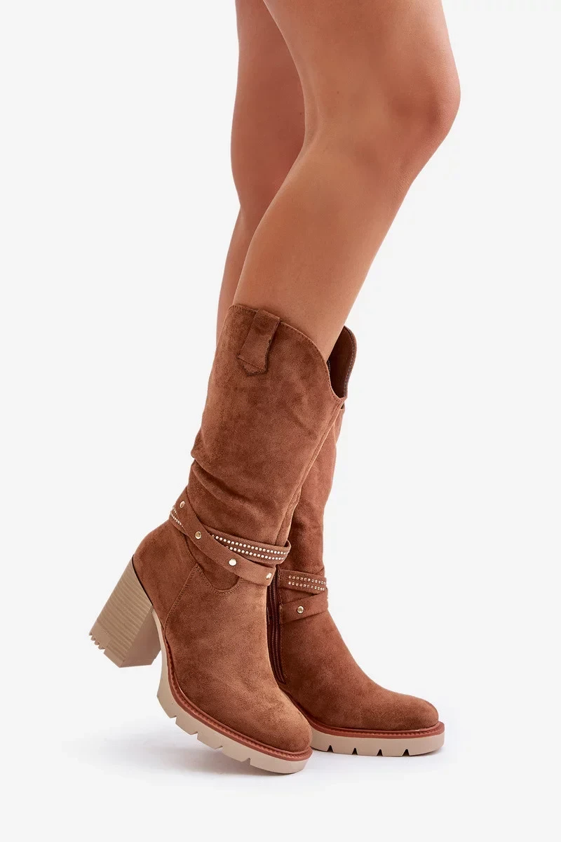 Dámské Kozačky Do Půl Lýtka Na Sloupku Zateplené Camel Ivanelis