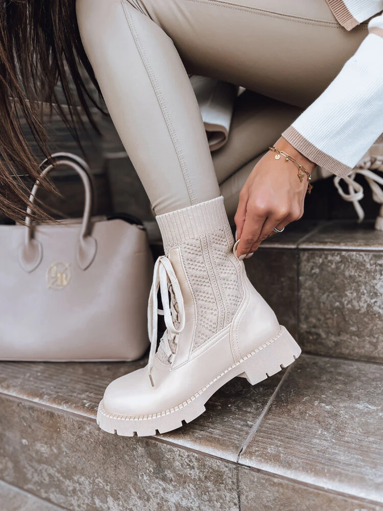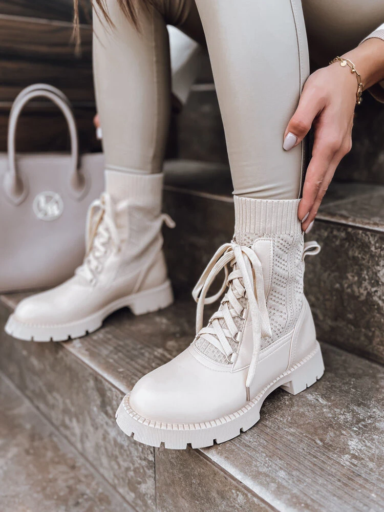 Šněrovací kozačky jsou rozhodně něčím, bez čeho si podzimně-zimní sezónu nedokážeme představit. Byly vyrobeny z kombinace kvalitní imitace kůže a ponožkového svršku. Celek díky detailům dodá každému stylingu jedinečný charakter. Standardní velikost, doporučujeme zvolit velikost, kterou nosíte.