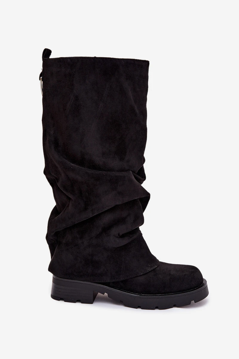Dámské kozačky s ohnutým vrškem jsou velkým hitem zimních trendů. Vyrobené z eko kůže. Postavené na platformě s mohutným podpatkem. Vyhřívané obuvním přikrývkou, zajišťují pohodlí a teplo v chladnějších dnech. Pohodlné na nošení díky zipu na boku, navíc stříbrný zip a pásek s přezkou na horní straně vršku dodávají módní, výrazný charakter. Skvěle se hodí jak pro každodenní, tak i pro elegantní stylizace. Při výběru velikosti se řiďte tabulkou velikostí. Při výběru velikosti se řiďte tabulkou velikostí.