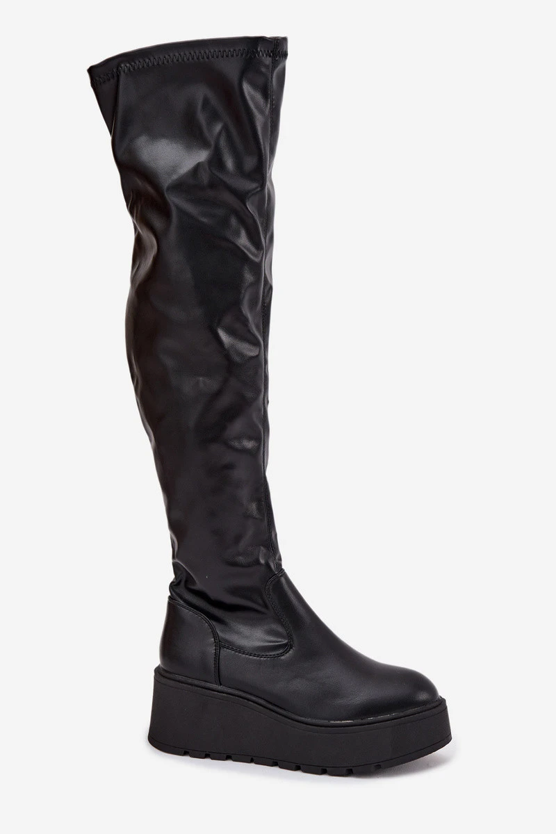 Dámské Kozačky Kolena Na Platformě A S Černé model 21707030 - Boto