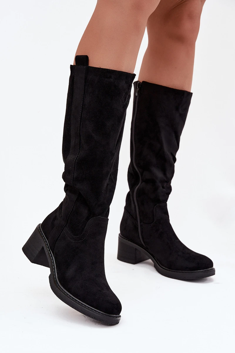 Dámské kozačky na Eko semiš černé model 21747873 - Boto