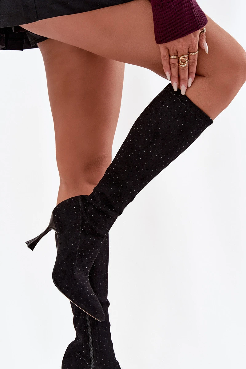 Kozačky jsou vyrobené z kvalitní eko kůže, která zajišťuje odolnost a elegantní vzhled. Jehlový podpatek opticky prodlužuje nohy a zajišťuje ženský siluetu. Jemné zdobení na svršku přidává botám výrazný akcent a podtrhuje jejich styl. Vnitřní podšívka je příjemná na nošení a zajišťuje komfort po celý den. Boční zip umožňuje snadné obouvání a perfektní přizpůsobení boty noze.