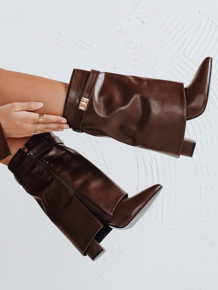 Dámské kozačky na jehlovém podpatku s širokým svrškem hnědé FashionStreet ZY1117