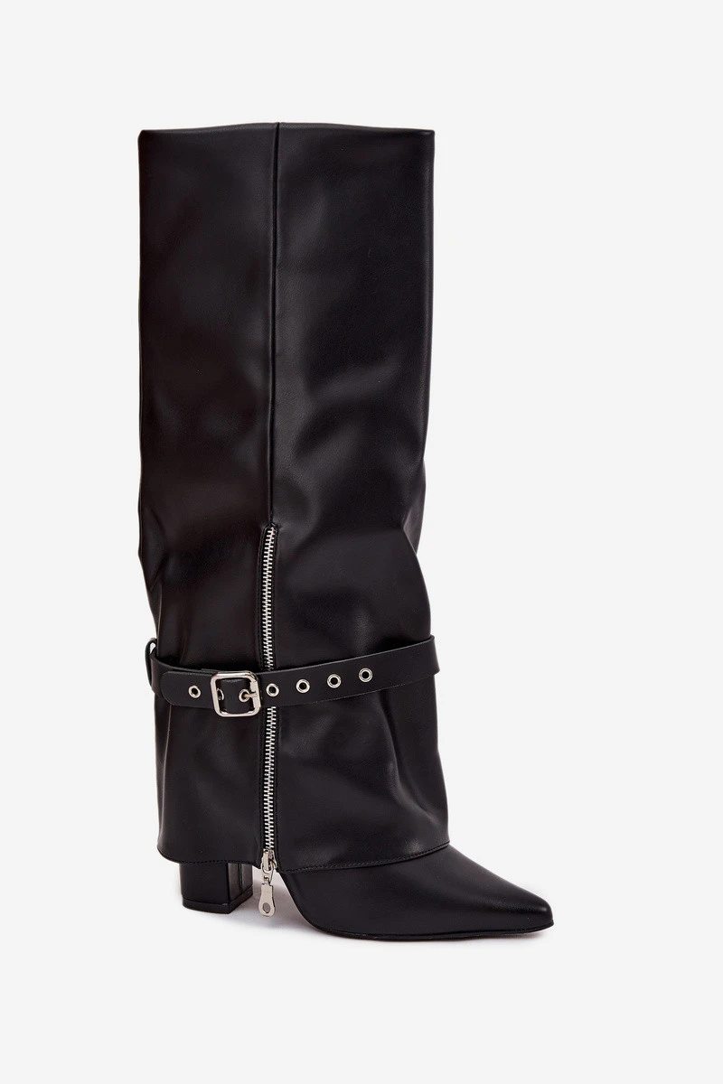 Nazouvací dámské kozačky nad koleno jsou elegantní a stylový návrh, který kombinuje klasiku s moderním akcentem. Model s špičatými nosy a podpatkem typu sloupky jemně zeštíhluje siluetu, a horní část, která přechází přes podpatek, dodává celku zvláštní charakter. Přídavný pásek s ozdobnou sponou lze sundat nebo libovolně nastavit, čímž mění styl bot a přizpůsobuje je různým outfitům. Ideální k šatům, sukním i elegantním volnočasovým outfitem, vnáší módní ženský prvek do každého šatníku. Při výběru velikosti se řiďte tabulkou velikostí. Při výběru velikosti se řiďte tabulkou velikostí.EAN čárové kódy zboží jsou: