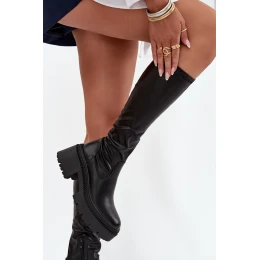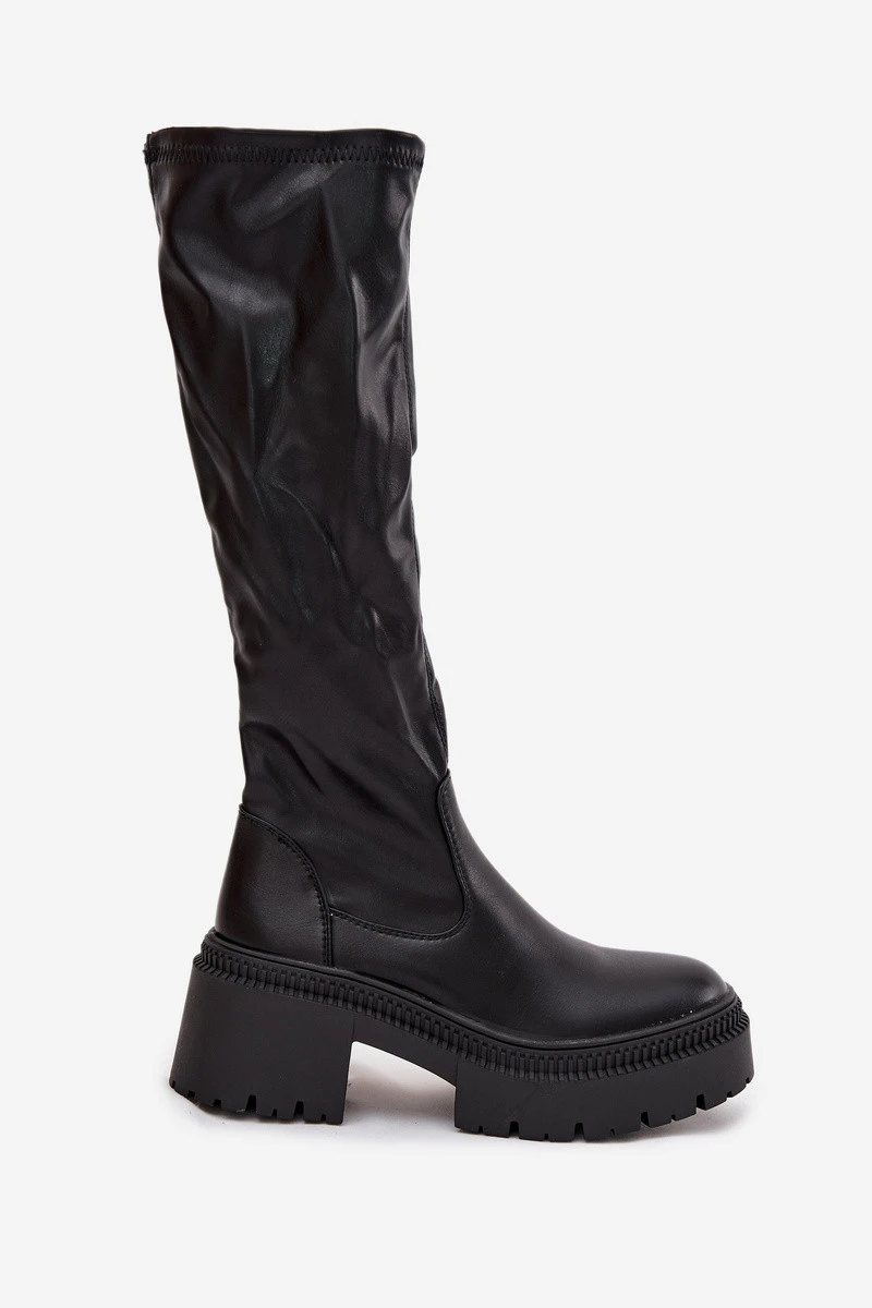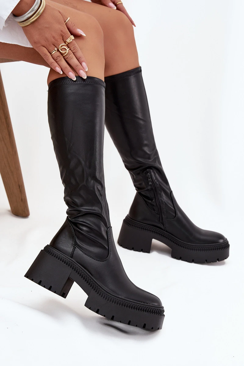 Dámské kozačky na masivním podpatku a platformě, nazouvací Florinne – černé