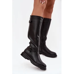 dámské kozačky na nízkém podpatku s přezkami Černé model 21714944 - Boto