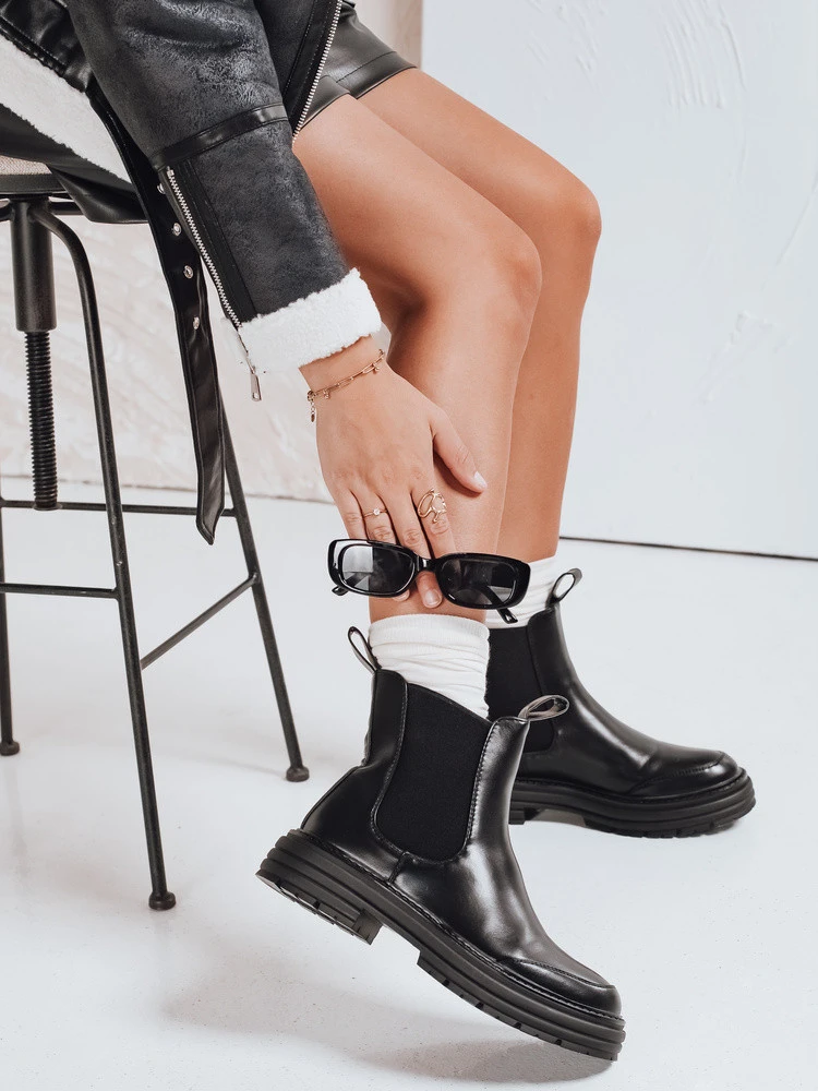 Eleganckie botki na platformie to świetne rozwiązanie dla kobiet, które cenią zarówno styl, jak i wygodę. Dzięki solidnej podeszwie zapewniają stabilność i komfort przez cały dzień, a minimalistyczny design sprawia, że pasują do wielu stylizacji. Idealne na codzienne wyjścia, jak i bardziej eleganckie okazje. Wykonane z wysokiej jakości materiałów, gwarantują trwałość i modny wygląd.