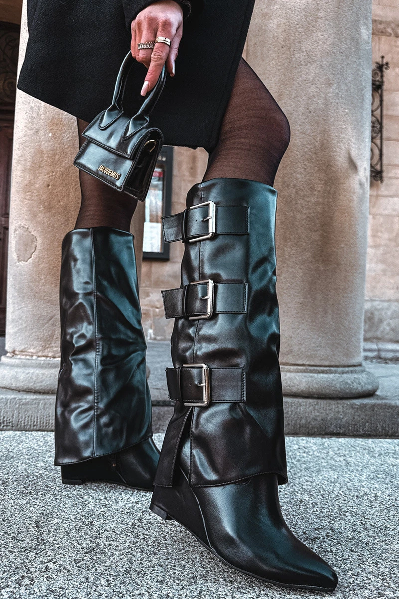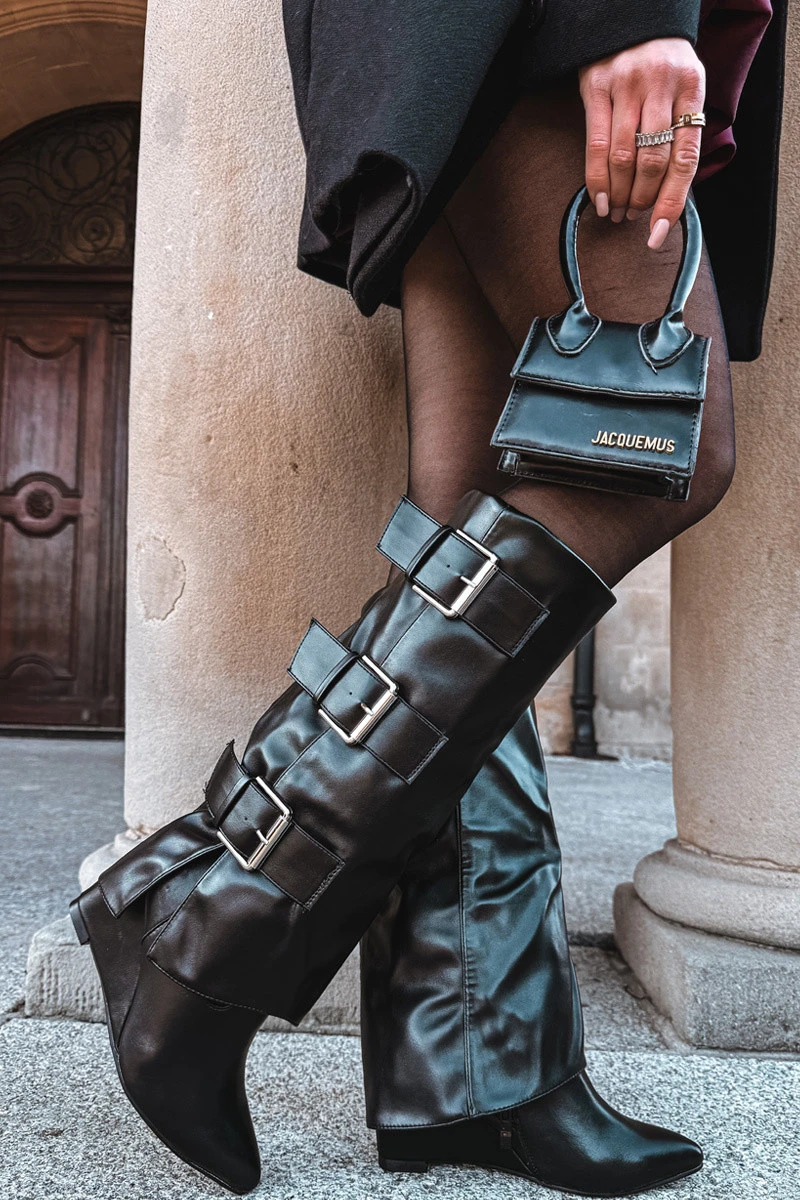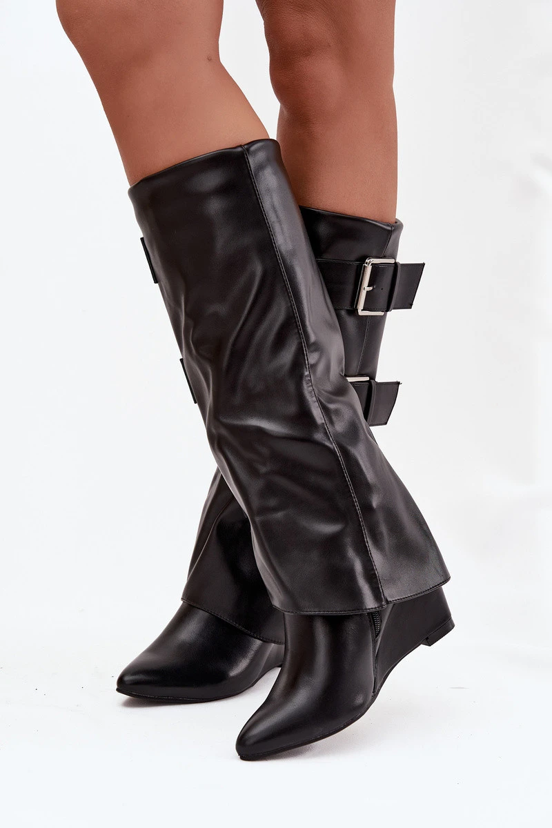 Dámské kozačky na platformě s lemem a přezkami Černé model 21747887 - Boto