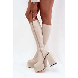 Dámské Kozačky Na Podpatku A Platformě Světle Béžové Yavira