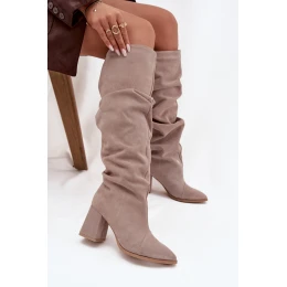 Dámské kozačky na podpatku Béžová Zazoo model 21802008 - ZOiO