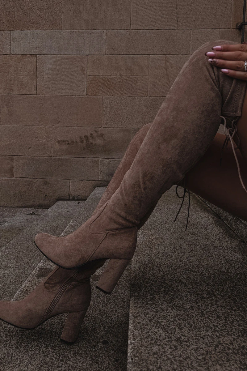 Dámské kozačky na podpatku béžové model 21714951 - Boto
