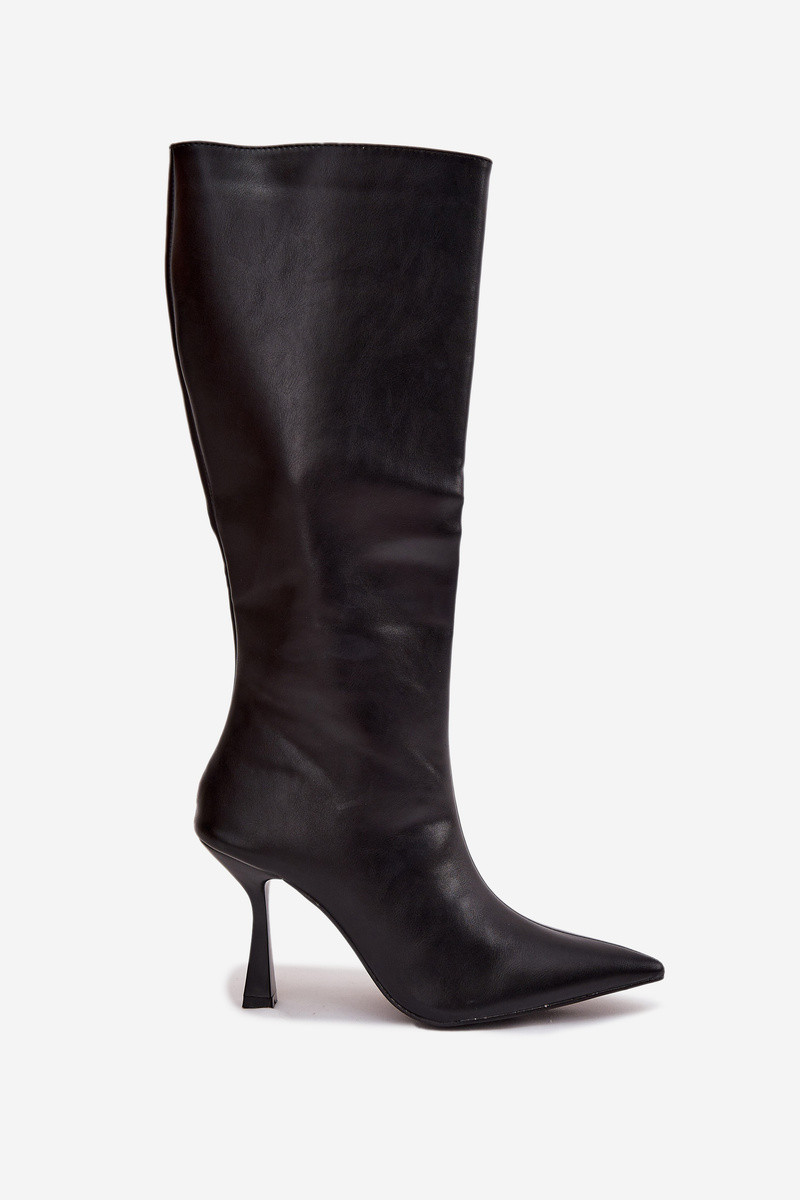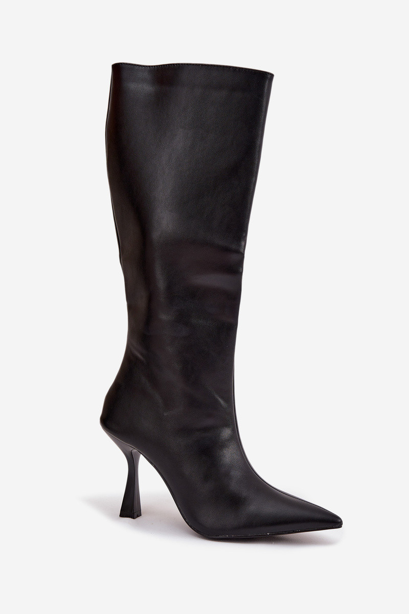 Dámské kozačky z ekologické kůže s klasickým, elegantním střihem. Model s špičatými špičkami a vysokým podpatkem ve tvaru jehly zeštíhluje postavu, zatímco límec sahající nad kolena zdůrazňuje nohy. Zip po straně usnadňuje rychlé nazutí a dokonalé přizpůsobení nohám, což je ideální pro večerní výlety a elegantní příležitosti. Při výběru velikosti se řiďte tabulkou velikostí. Při výběru velikosti se řiďte tabulkou velikostí.