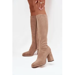 Dámské kozačky na podpatku NN634 Béžová - GIVANA