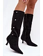 Dámské Kozačky Na Podpatku S Ozdobnými Detaily Černé Hovelle