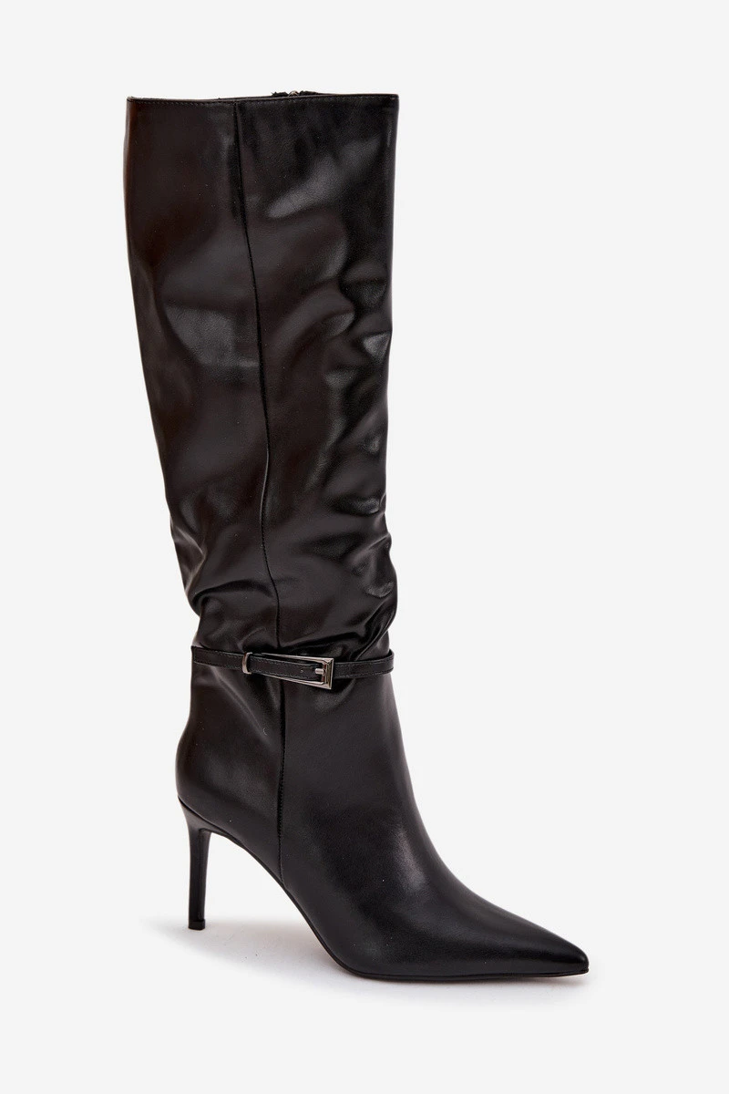 Dámské kozačky na podpatku s páskem černé Lisanne