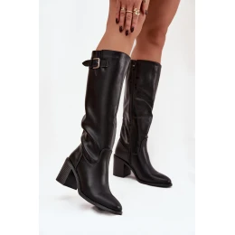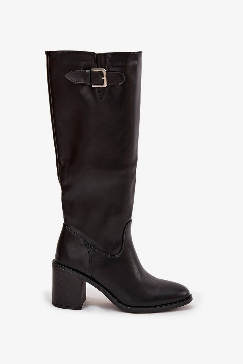 Dámské kozačky na podpatku s přezkou černé model 21744576 - Boto