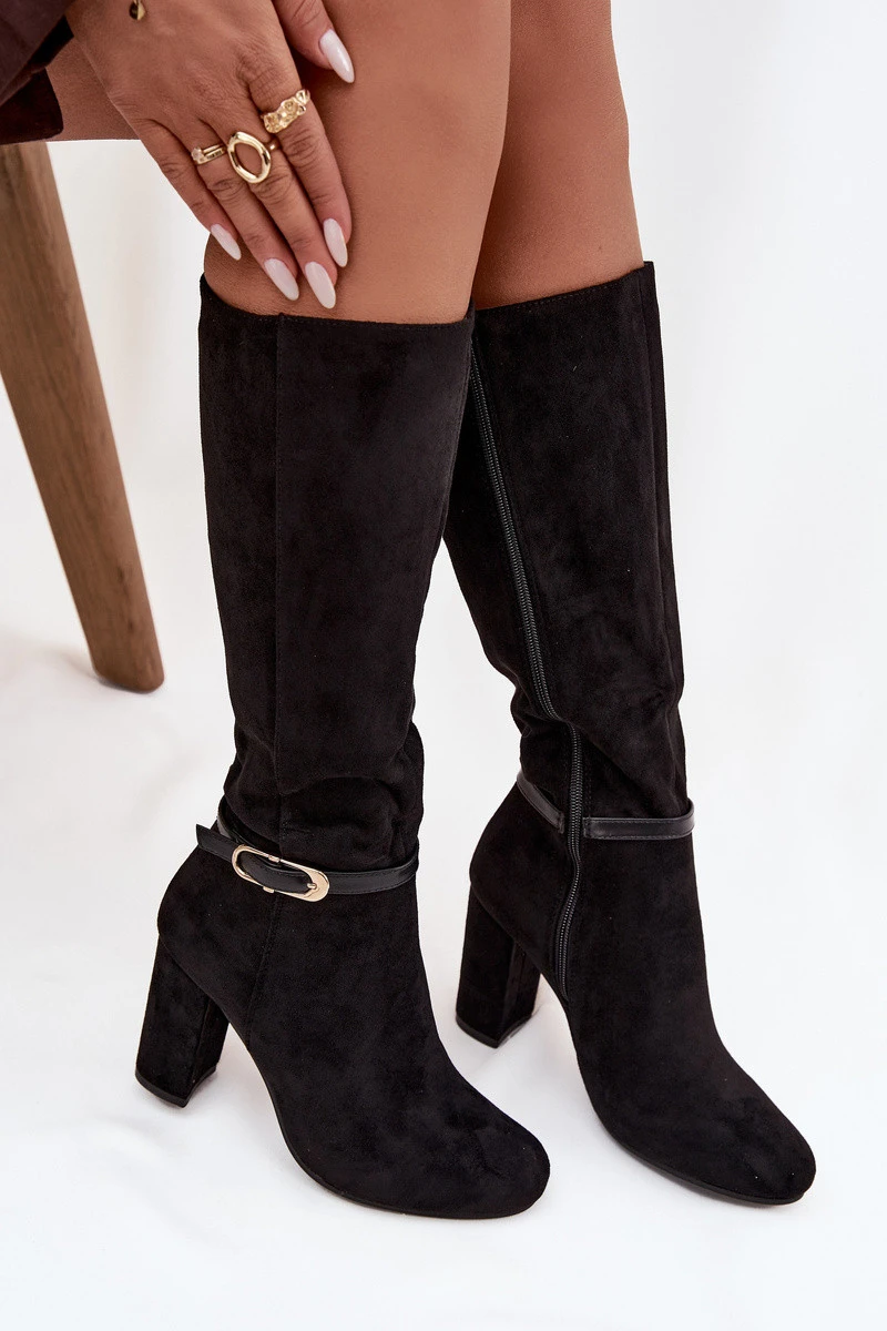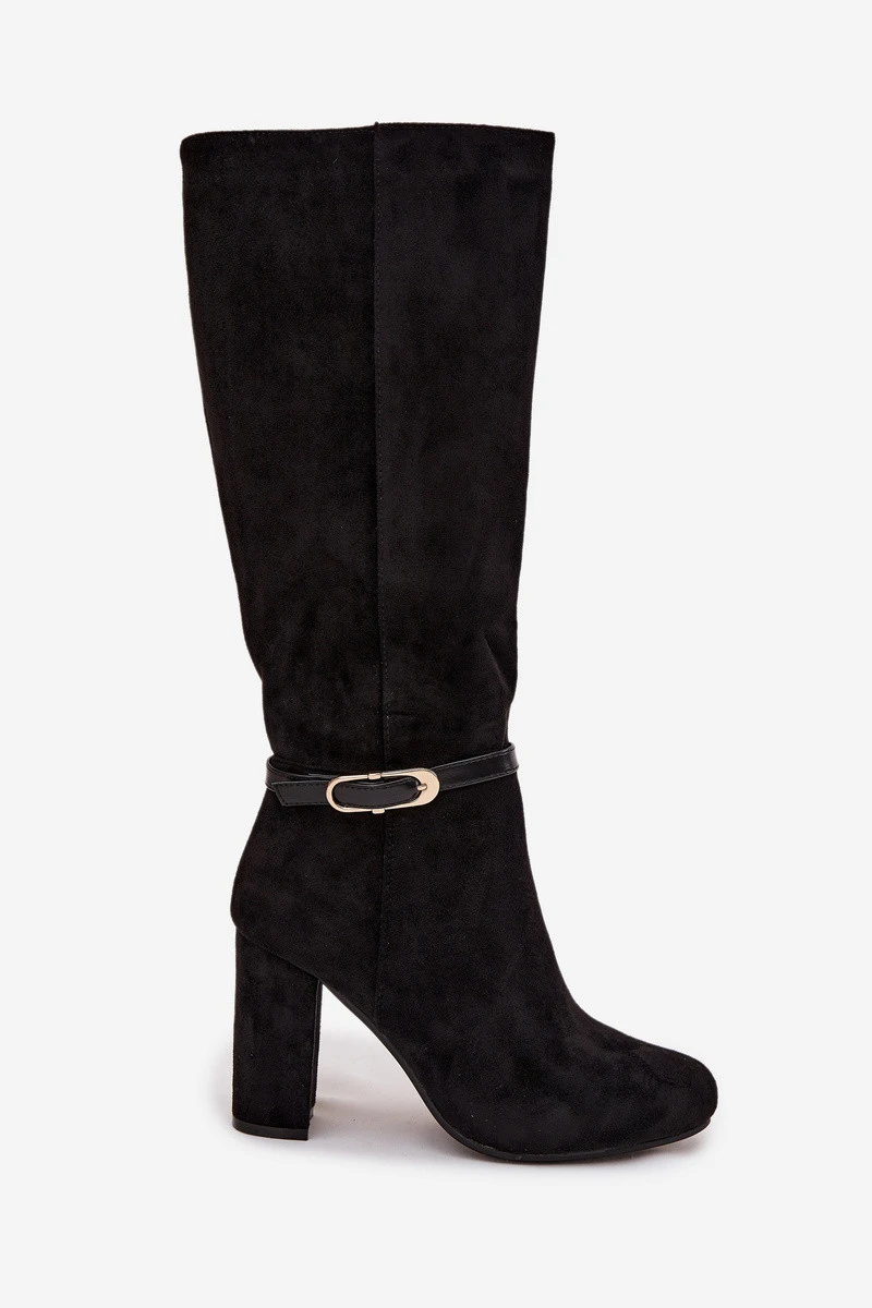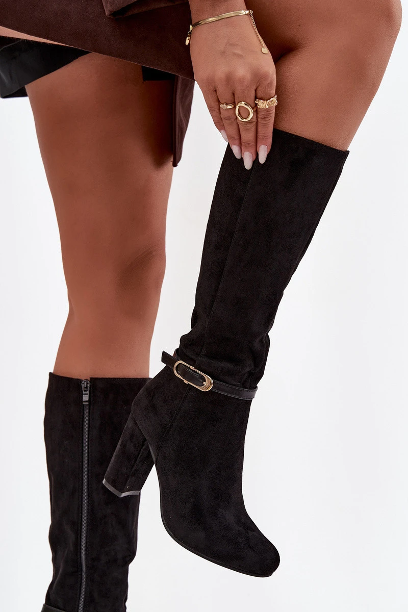 Dámské kozačky na podpatku se zlatou sponou zateplené černé model 21714336 - Boto