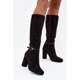 Přidání recenze k Dámské kozačky na podpatku se zlatou sponou zateplené černé model 21714336 - Boto