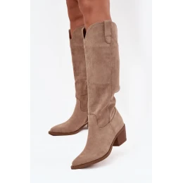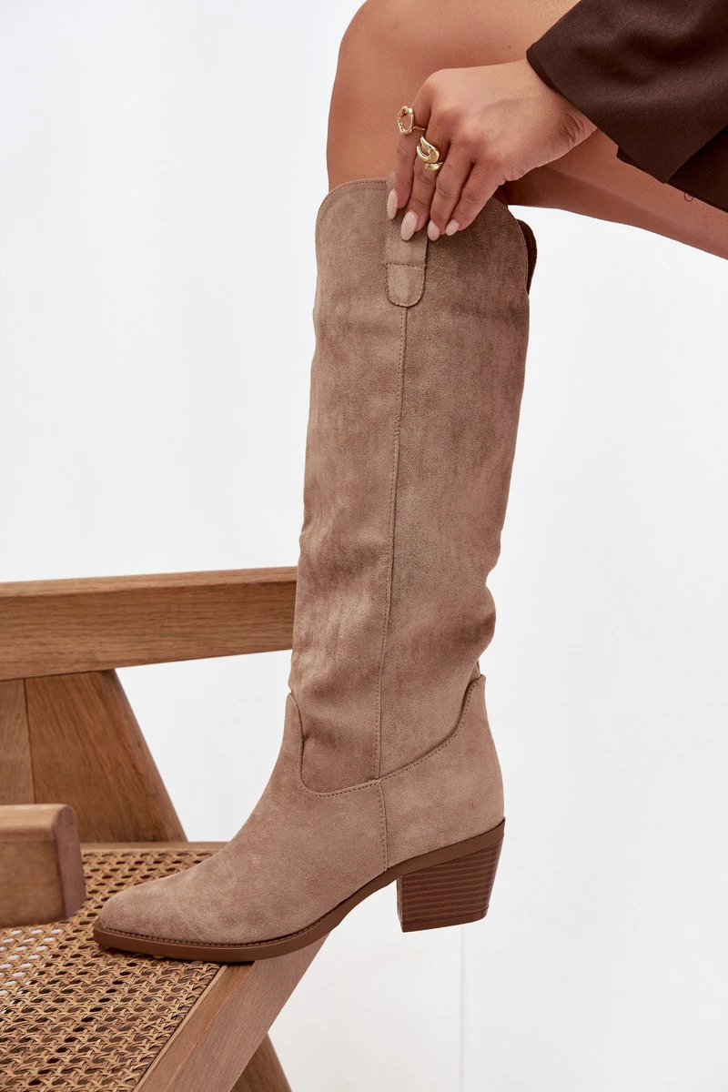 Dámské kozačky na podpatku z eko semiše béžové model 21714895 - Boto