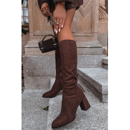Dámské kozačky na podpatku z eko semiše čokoládové Yelisse