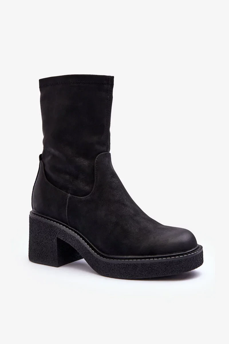 Dámské Kozačky Na Robustních Podpatcích Černá Tozanna