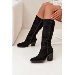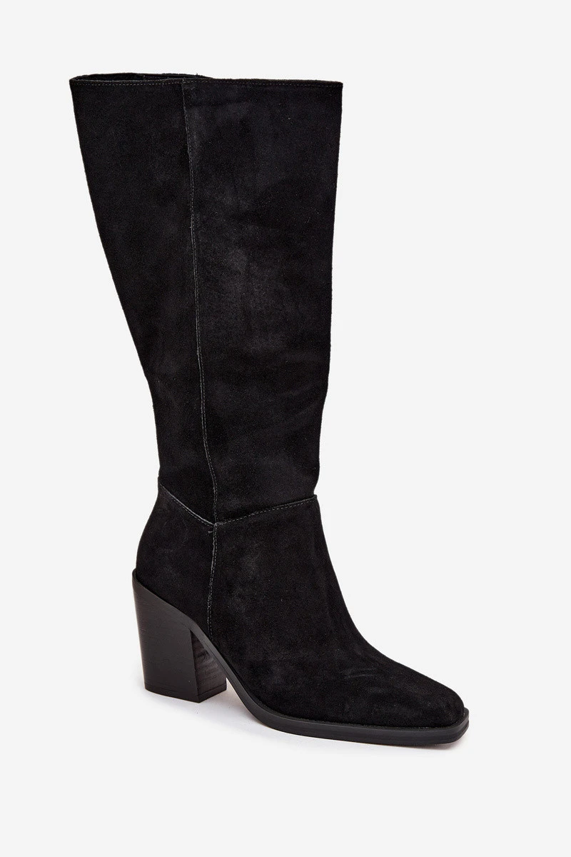 Dámské kozačky na sloupkovém podpatku se zipem Lissara – černé, eko semiš