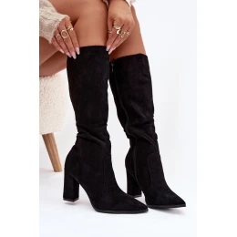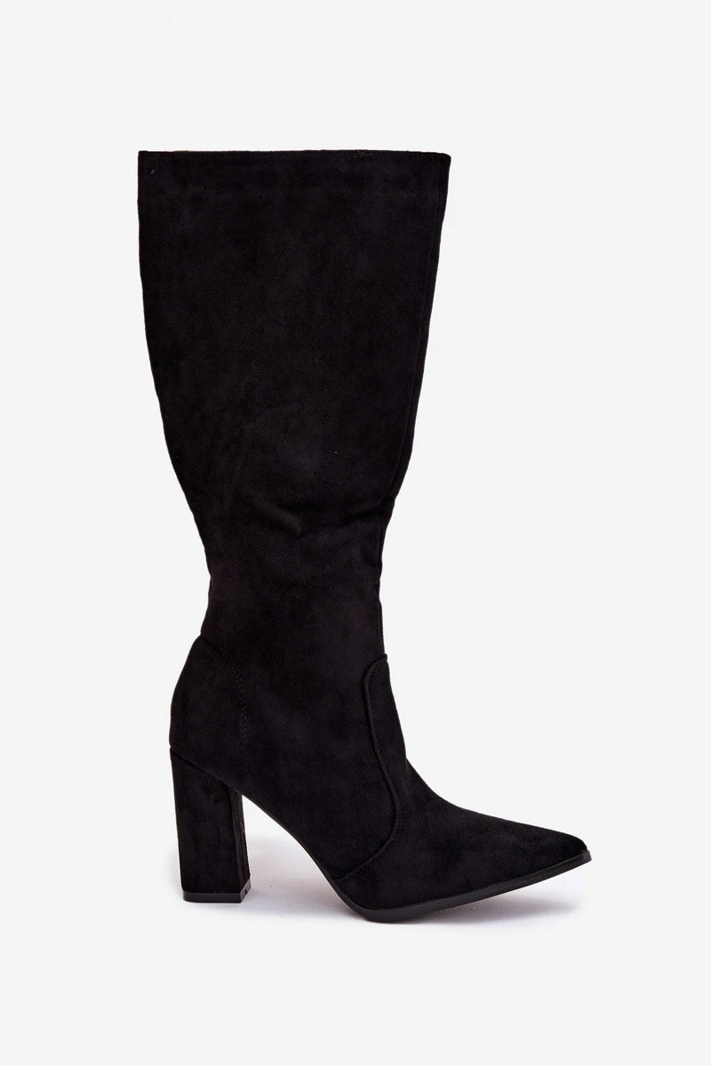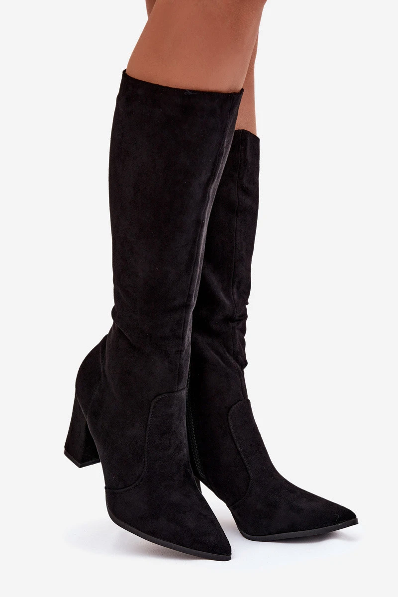 Dámské kozačky na sloupku z eko‑semiše zateplené – černé Narille