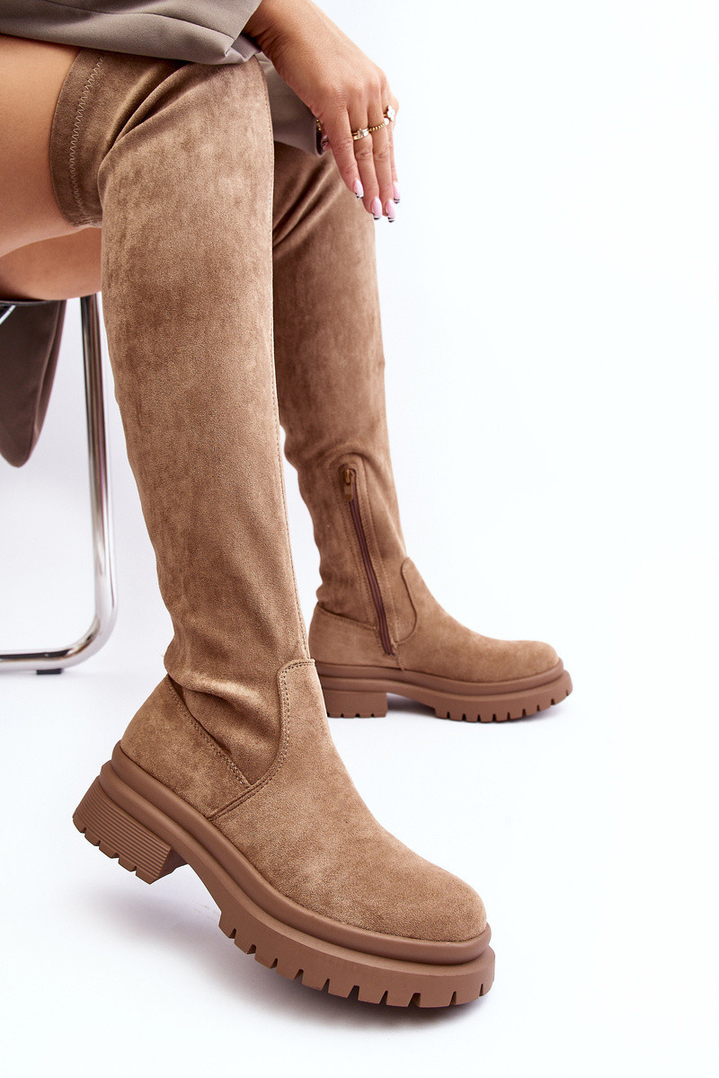 Dámské kozačky nad koleno na ploché podrážce béžové model 21641044 - EVENTO