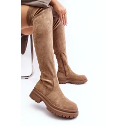 Dámské kozačky nad koleno na ploché podrážce béžové Silune