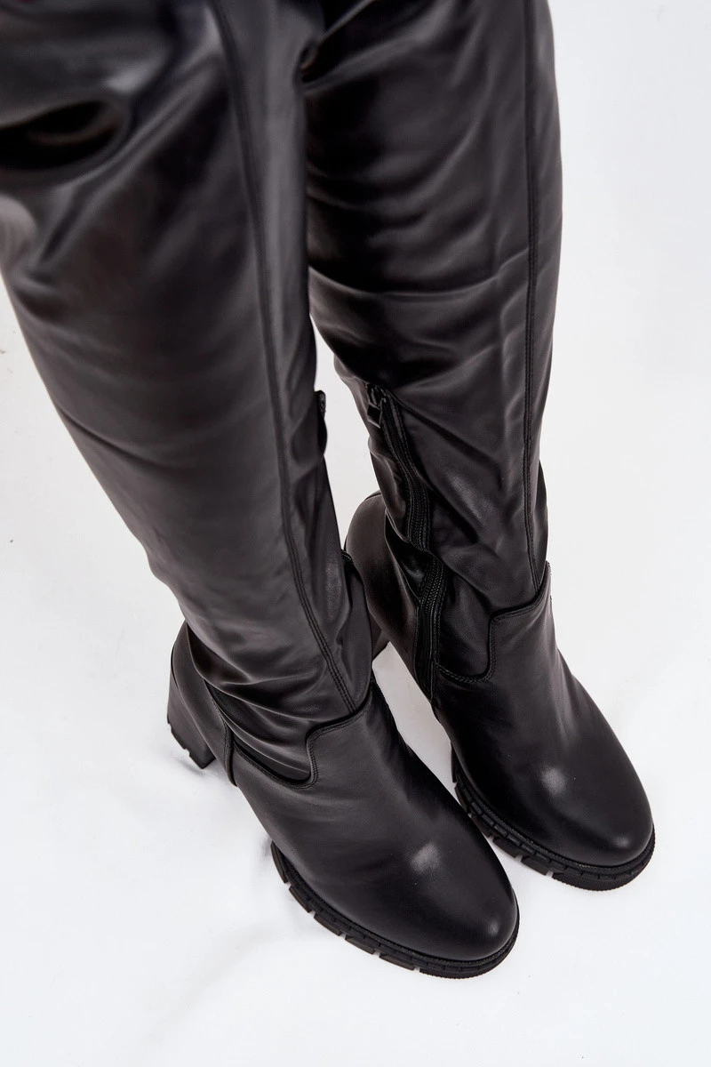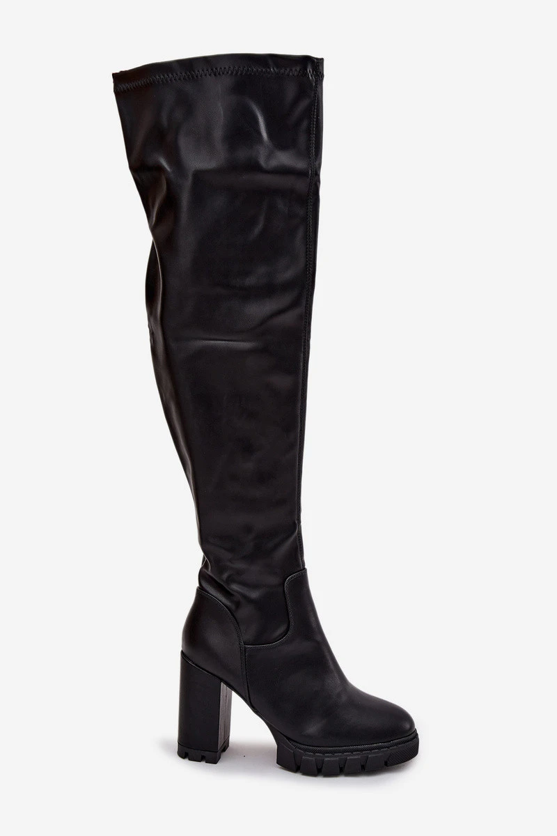 Dámské kozačky nad koleno na podpatku eko kůže černé model 21747894 - Boto
