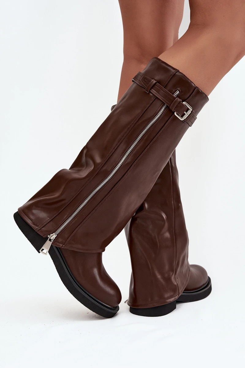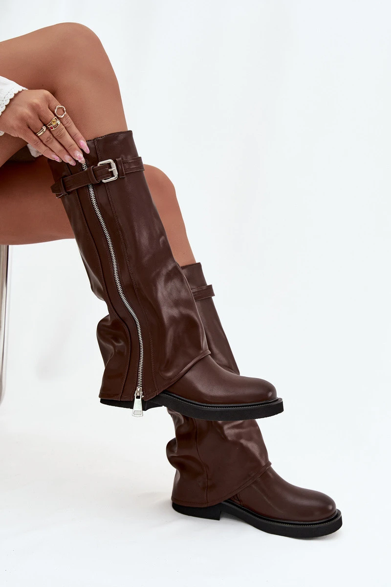 Dámské kozačky s lemem s přezkou a zipem hnědé model 21711807 - Boto