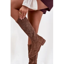 Dámské Kozačky S Mřížkovým Vzorem Na Ploché Podpatku S Barški HY52 534 Hnědé