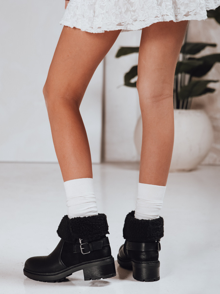 Botki damskie skórzane z kożuszkiem ZY1250 czarne