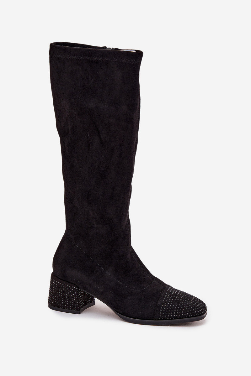 Dámské kozačky s ozdobou na kostku ekokůže Černé Ivanna