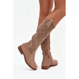 Dámské kozačky s perforací na nízkém podpatku S.Barski HY52-534 béžové