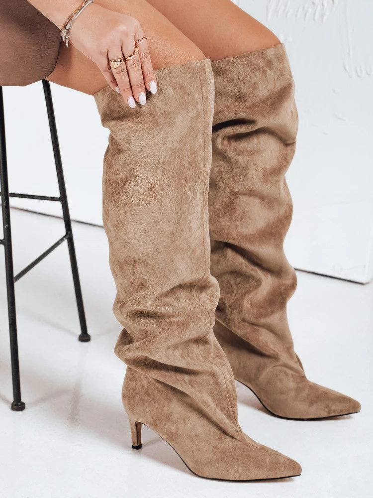 Dámské kozačky s pomačkaným svrškem z béžového semiše FashionStreet ZY1100