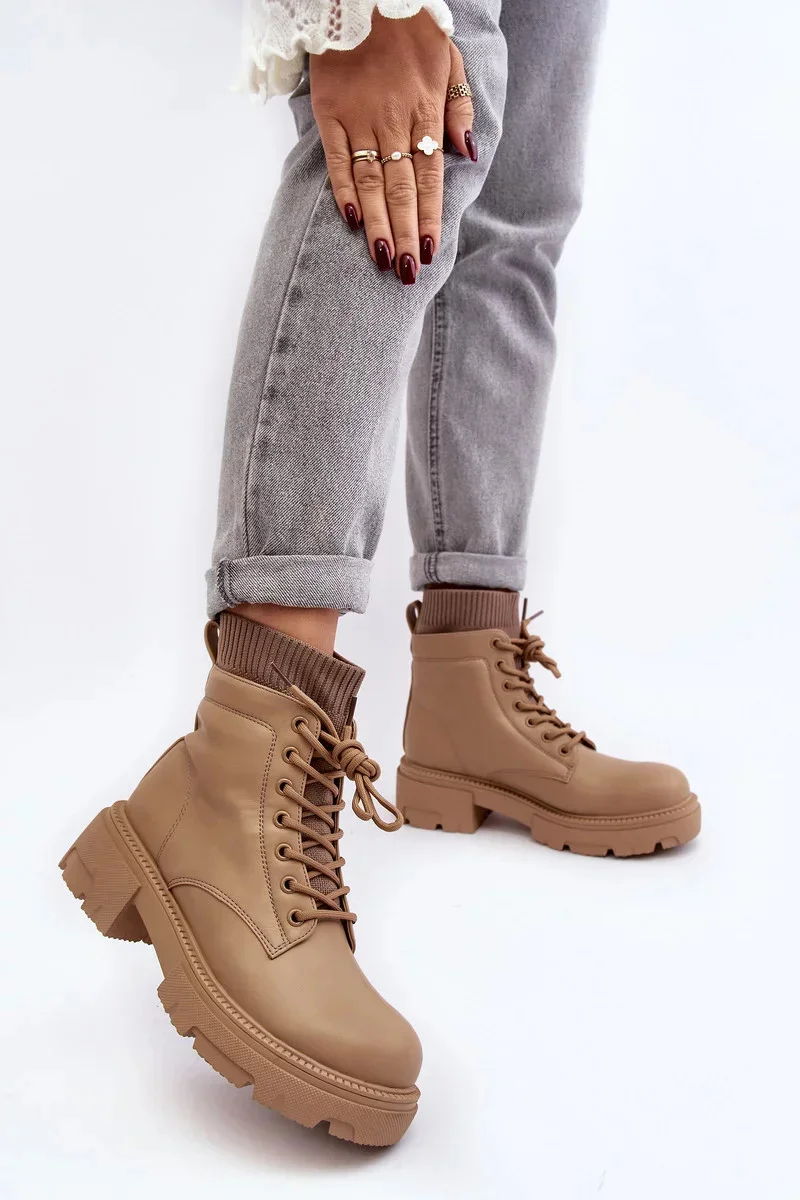 Dámské turistické boty vyrobené z eko kůže. Nasazené na masivním plochém podpatku a platformě. Nazouvací model se svrškem po kotníky. Šněrování vpředu. Zaoblené prsty. Vyztužená pata. Tento klasický model využijete k mnoha podzimním a zimním stylizacím! Při výběru velikosti se řiďte tabulkou velikostí.EAN čárové kódy zboží jsou: