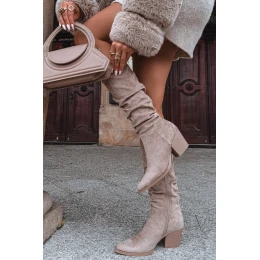 Dámské kozačky s vrásčitou horní částí na podpatku vyhřívané béžové Paelina