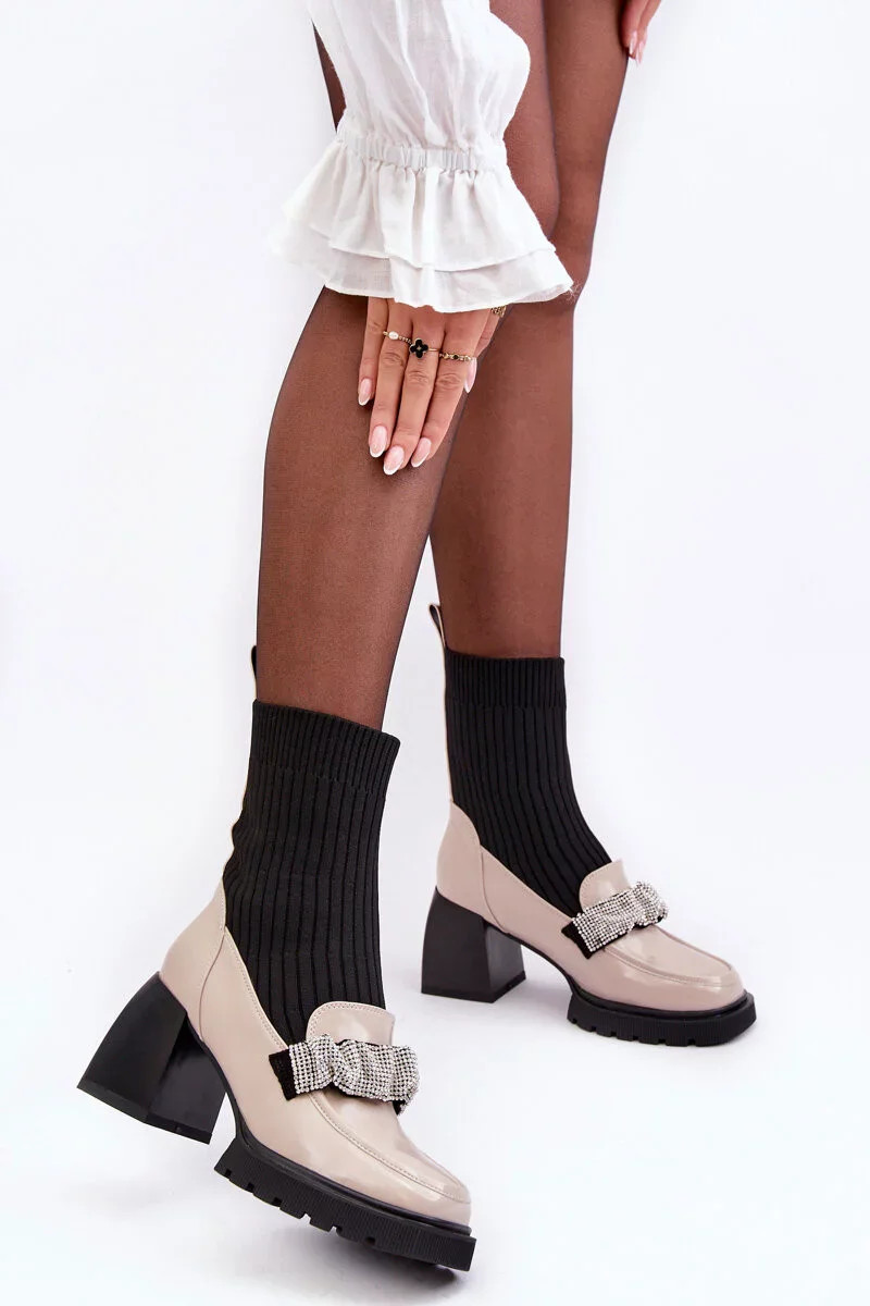 Dámské kozačky s vysokými ponožkami, béžové S.Barski